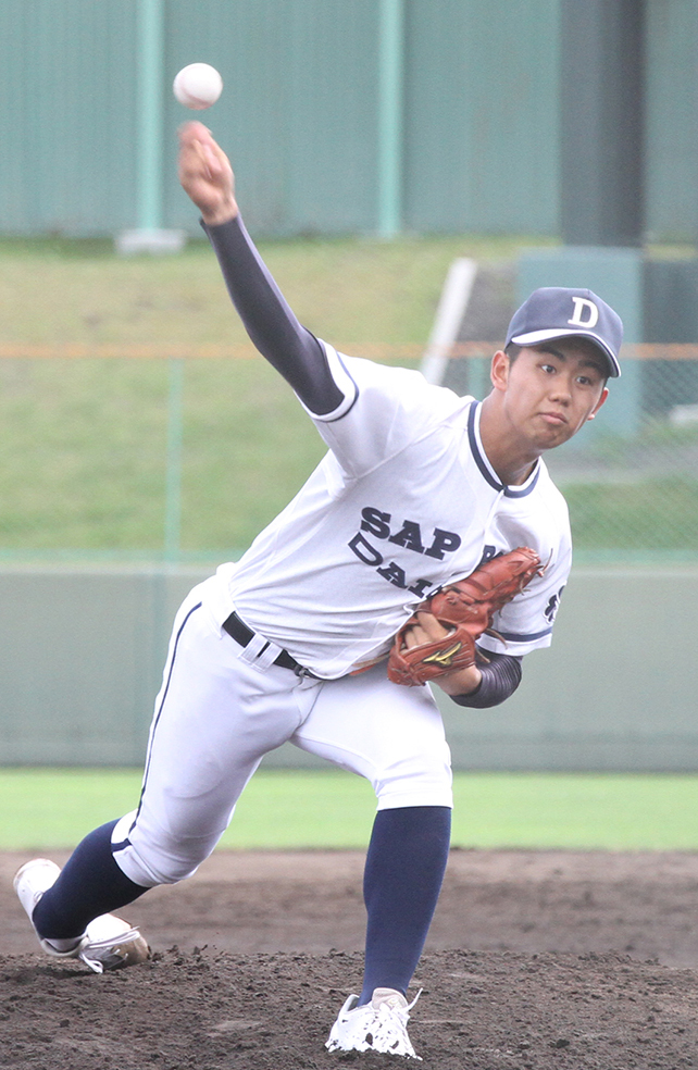 北海学園大の堀川投手は現在では絶滅危惧種のワインドアップから147キロの速球を放つ=撮影・西川薫