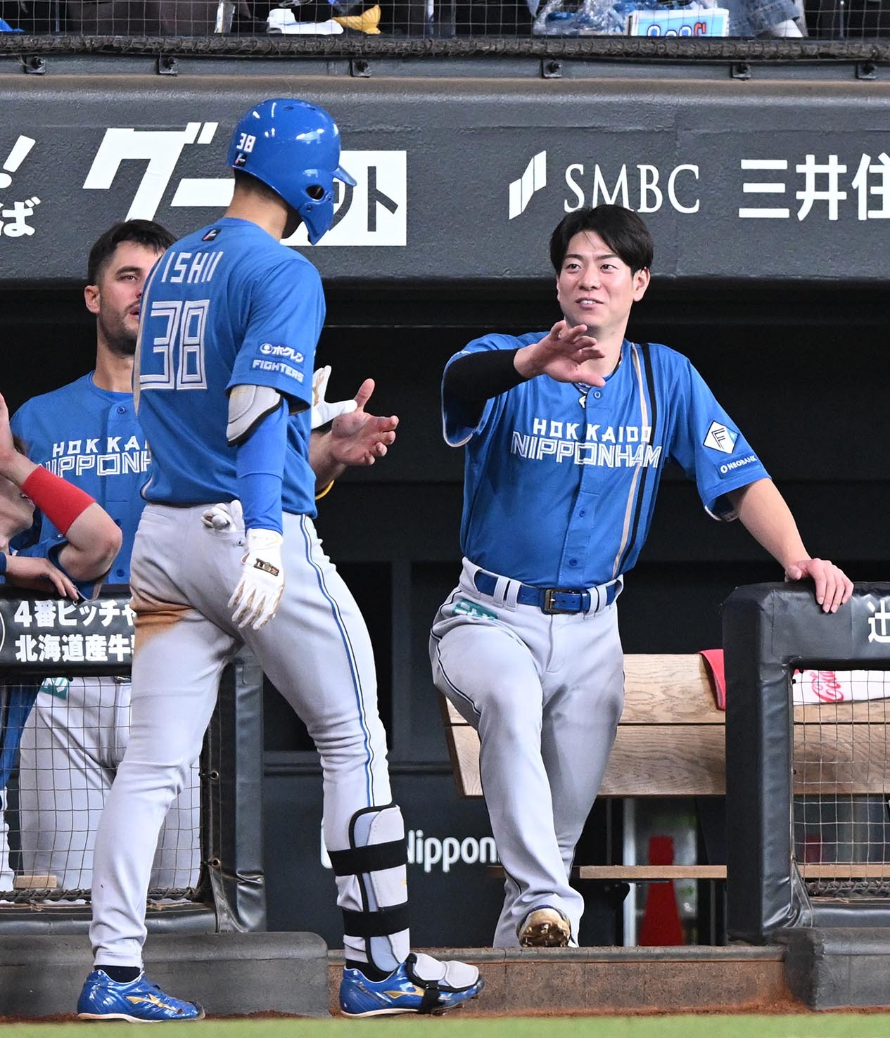 エスコンフィールド北海道では2年連続となるCSファーストステージ開催。昨年のこの時期、石井はフェニックス・リーグが行われていた宮崎にいた。ロッテとのしびれる戦いを画面越しに観戦。すると、新庄監督から一通のDMが届いた。「ボスからきょう勝つから。勝ってファイナル(ステージ)行くから呼ぶよとメッセージをもらっていて。勝ってくれという思いで見ていました」。福岡でのファイナルステージから合流し、2試合に出場した。