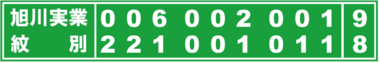 終盤は互いに1点ずつを加え、旭川実業が9-7の2点リードで九回裏の紋別の攻撃を迎えた。連打と犠打で1死二、三塁と一打同点の場面をつくり、三ゴロの間に1点返したが、最後は1番・尾上丈太朗外野手(2年)が三振に倒れて試合は終了した。