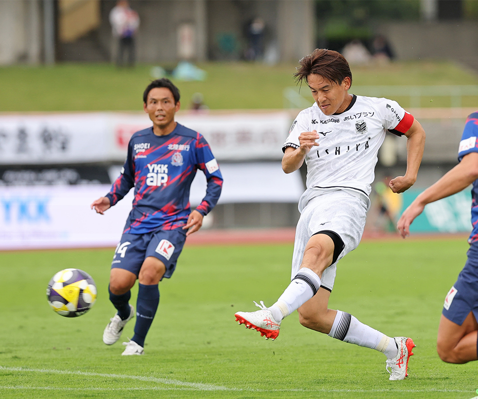 パスをつなぎながらチャンスをうかがう富山に対して序盤は押し込まれる場面もあったが、徐々にペースをつかみ、先手を取った。