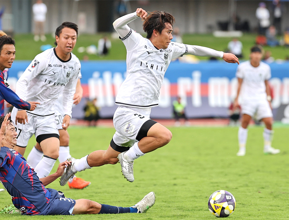 すると同23分、ここでも高嶺のゴラッソが効いて、流れを相手に渡さなかった。相手陣内中央付近でDF髙尾瑠(28)からの横パスを受けた高嶺は、周りを見て相手のプレスが来ないことを確認。高嶺は前を向き、約25メートルの距離から左足を振り抜いて今度はグラウンダーでゴール右下隅に2点目のゴールを突き刺した。