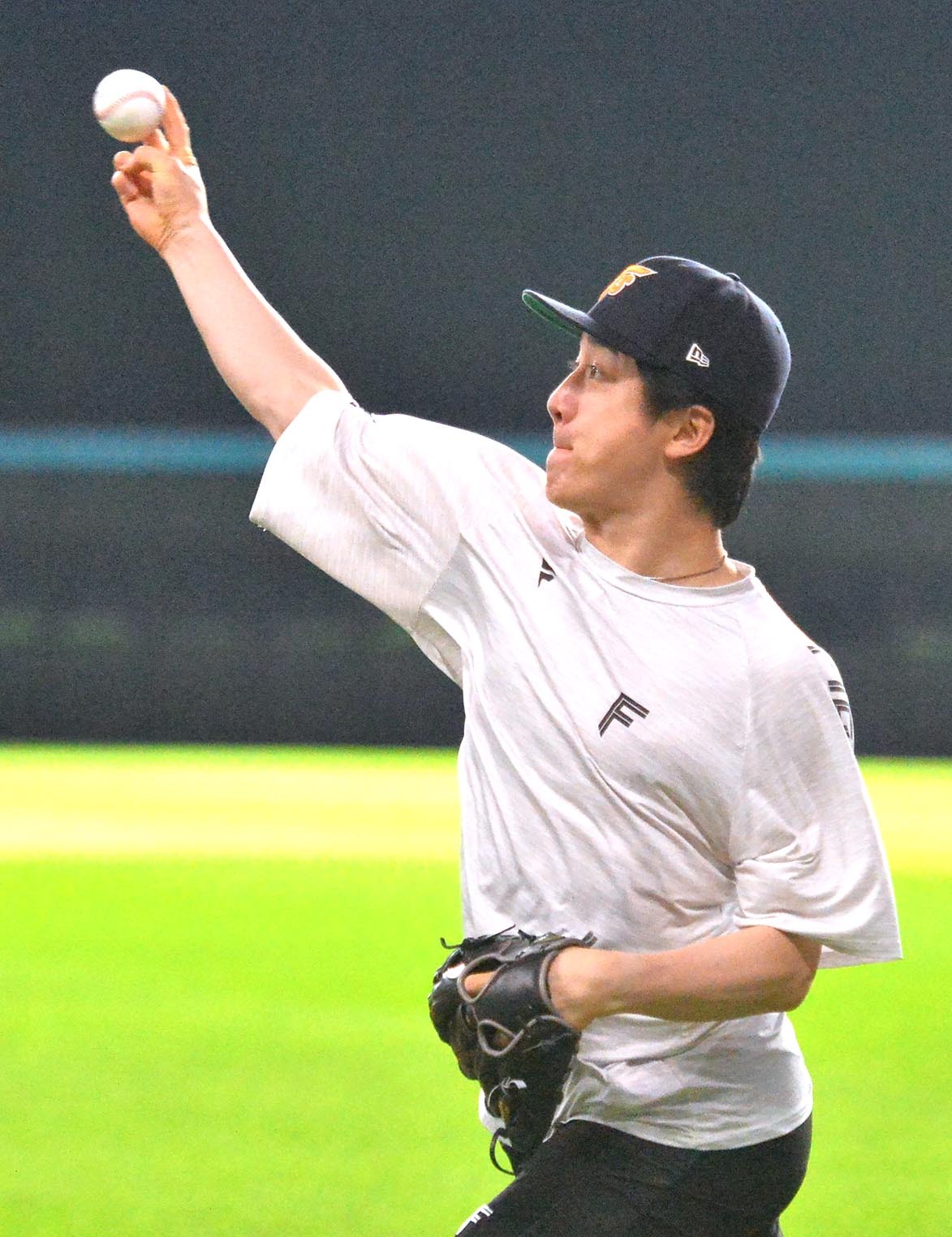この日は親善試合、そして来年3月に開幕するWBCで使用されるボールでキャッチボールを実施した。序盤こそ不慣れなためにすっぽ抜けるシーンが見られたものの、徐々に手応えをつかんでいき、終盤では変化球のチェックも行った。