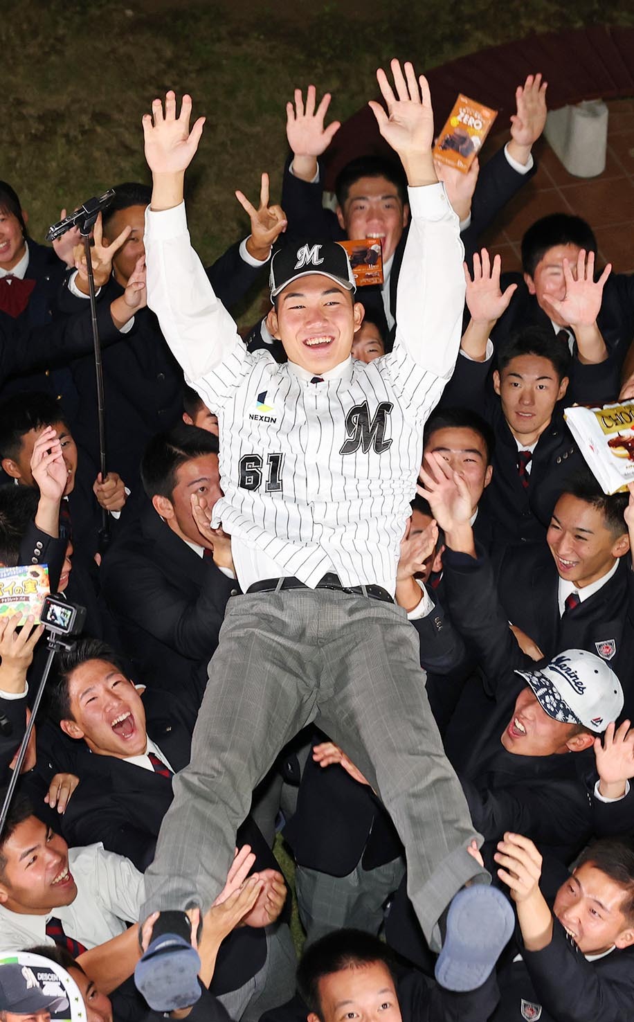 「いや、思わずそういう言葉をいただいて笑顔になった。佐々木朗希投手のようなピッチャーになりたい。超えられるように頑張りたい」