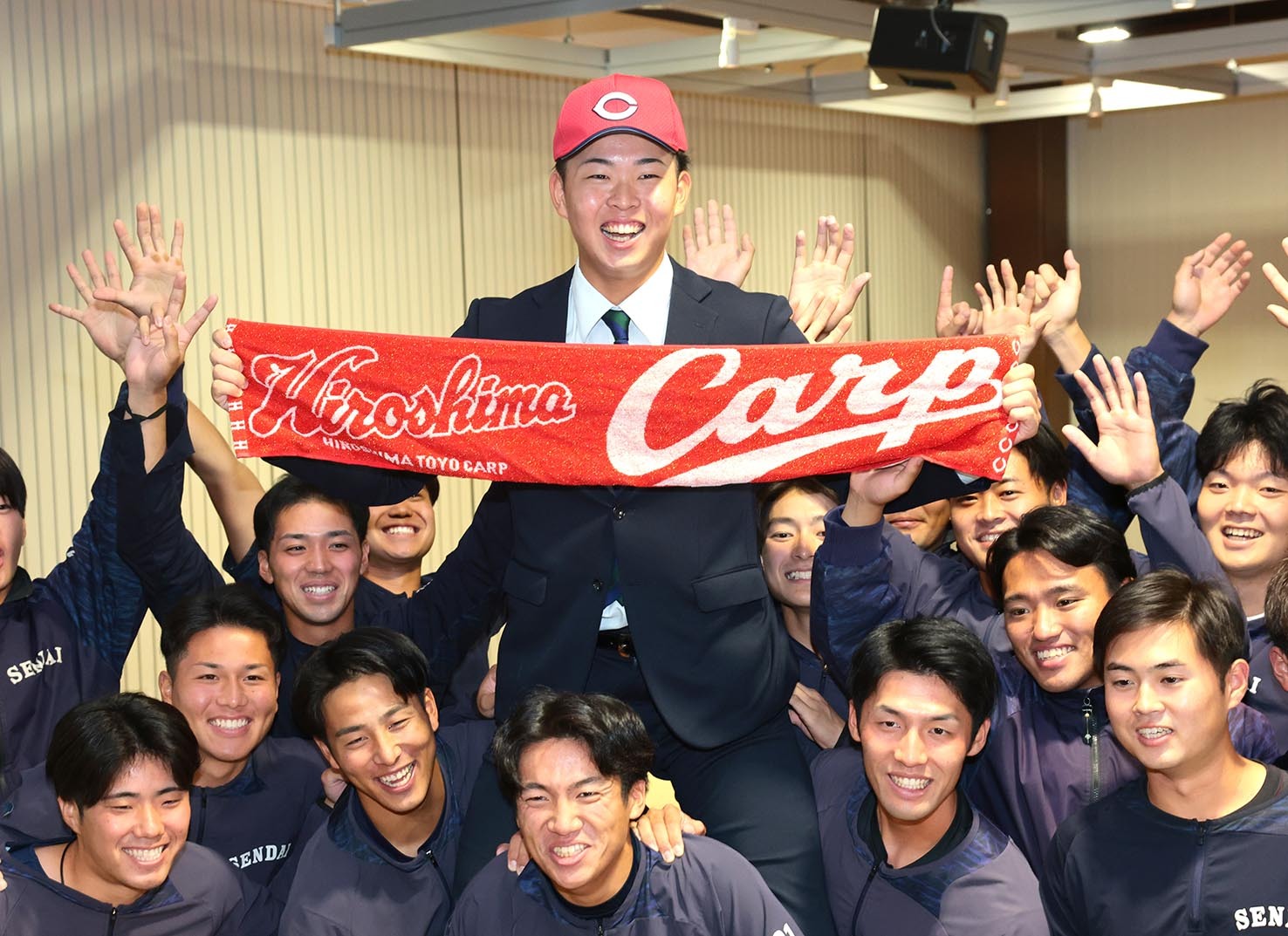 プロ野球ドラフト会議が23日、東京都内で行われ、日米大学野球選手権で4番も打った仙台大の平川蓮外野手(4年、札幌国際情報)が広島と日本ハムから外れ1位で指名を受け、抽選の末に広島が交渉権を獲得した。左右両打ちで、どちらの打球速度も170キロ超え。走攻守のそろった長距離スイッチヒッターで、父は高校野球の名門・北海高の指揮を執る平川敦監督(54)だ。指名後の一問一答は次の通り。