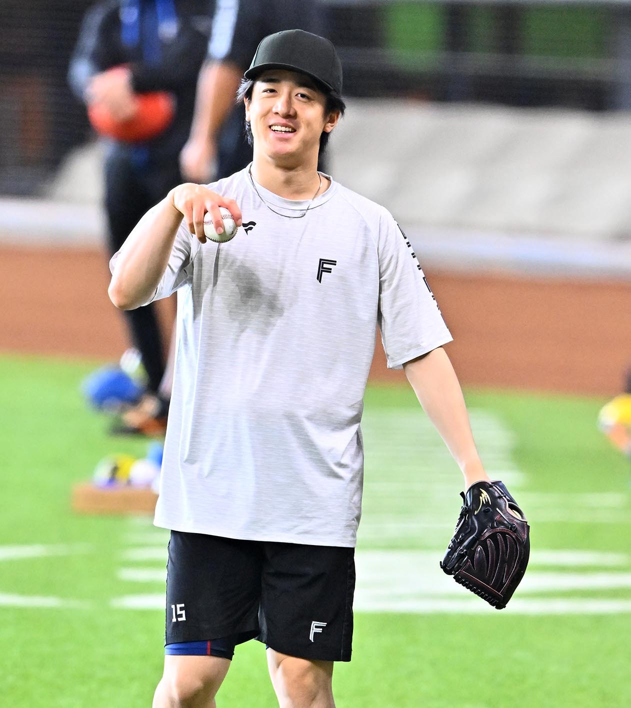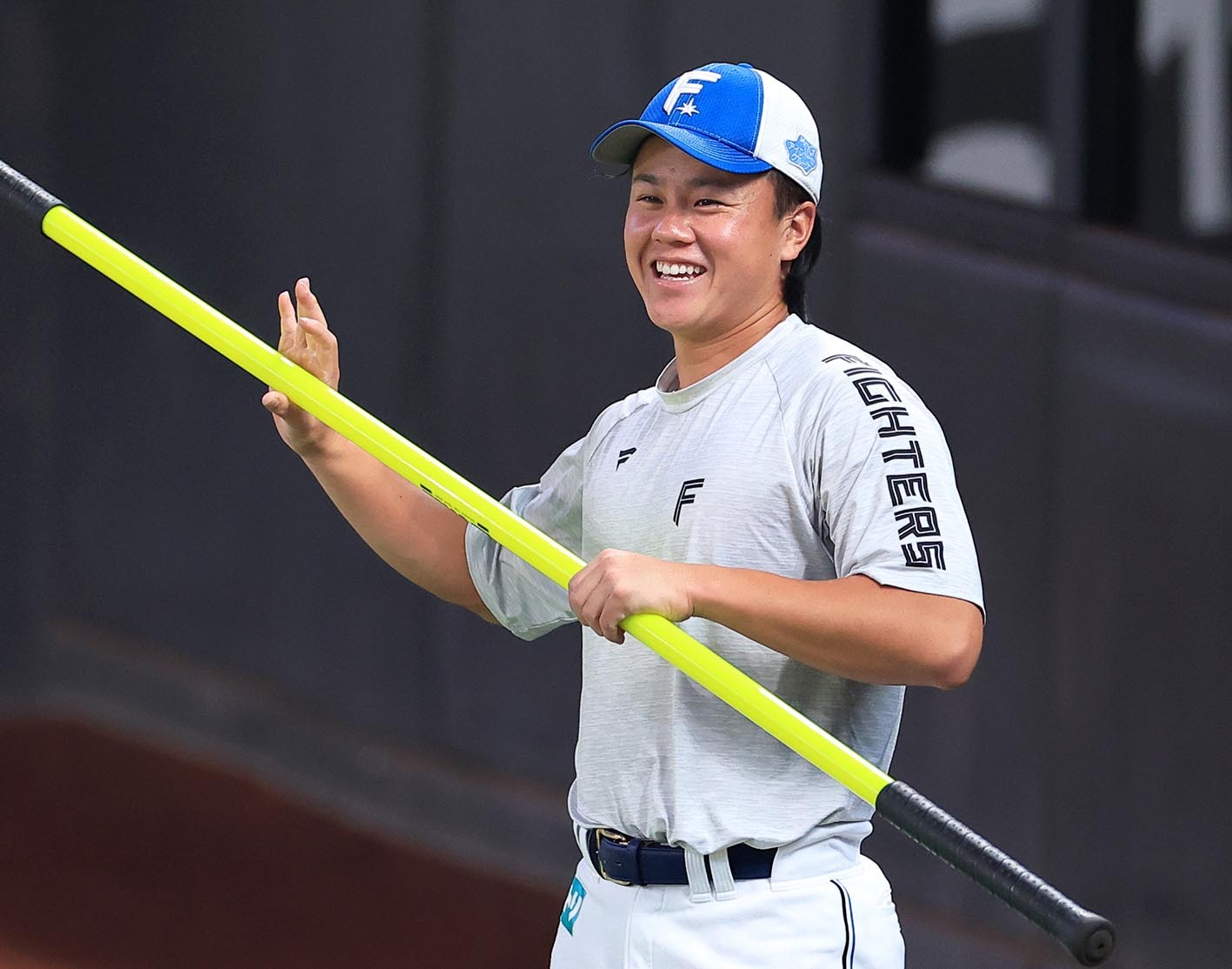 29日、エスコンでの秋季練習で笑顔を見せる今川=撮影・桜田史宏