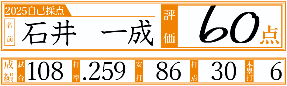 「60点。勝負弱い。CS(クライマックスシリーズ)もそうですし、得点圏で打っていないし、勝負弱い。ここぞという時に打てなかったです」