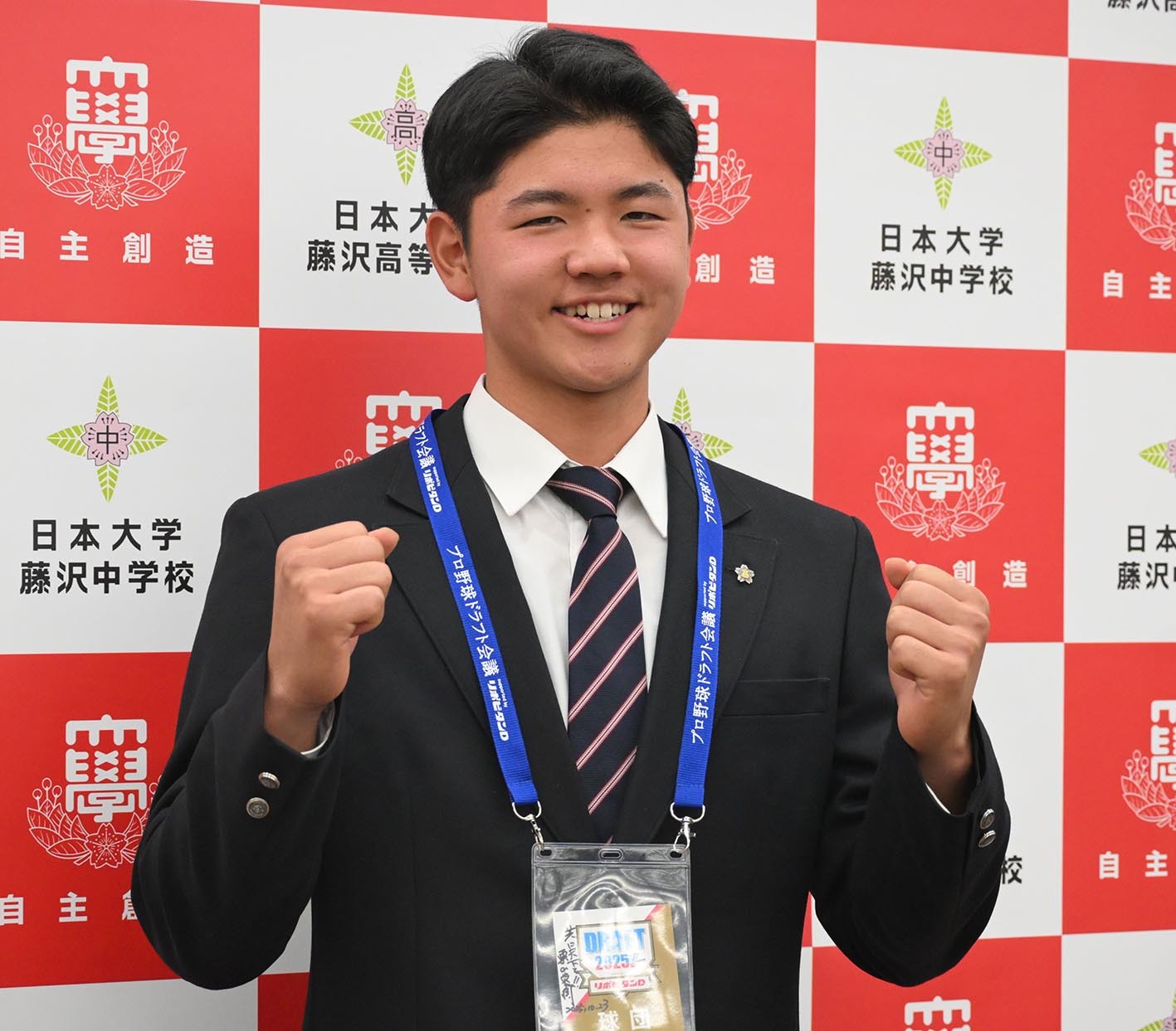 大渕GM補佐兼スカウト部長と坂本スカウトから同日に指名あいさつを受けた半田は「良い評価をしていただいたので、半田を獲って良かったなと思ってもらって、最終的には日本を背負う選手になることを考えて、しっかりこれから進んでいければなと思います」と気を引き締めた。