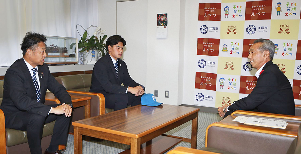 今、江別市は日本ハムの2軍本拠地誘致に力を入れている。後藤市長は「それに弾みをつけてほしい。常谷選手がそこで練習して、1軍に上がっていく。そういった姿を思い浮かべるだけで、すごくワクワクするような気持ち。ぜひとも活躍をして、夢のある選手になってほしい」