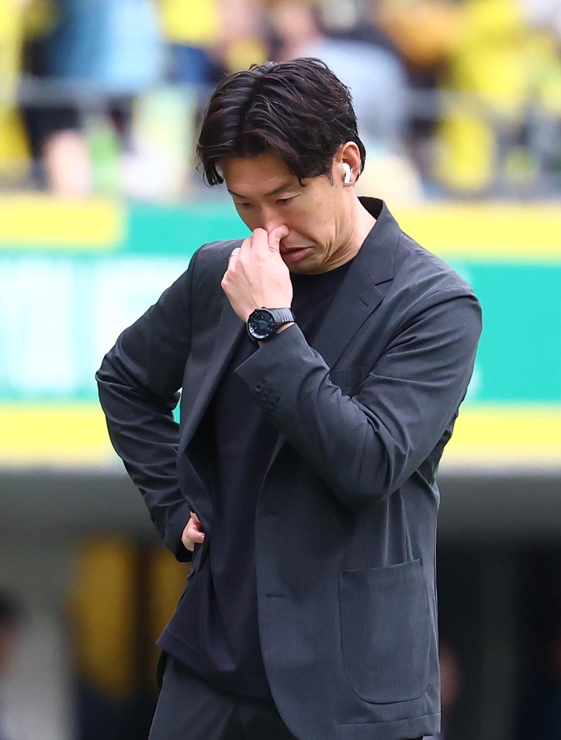 試合中に厳しい表情を見せる柴田監督