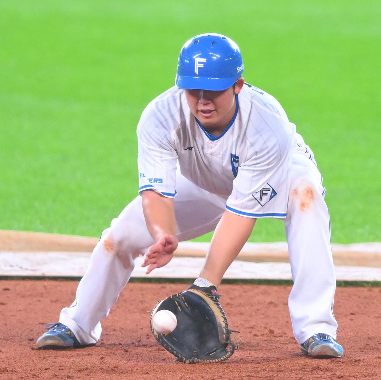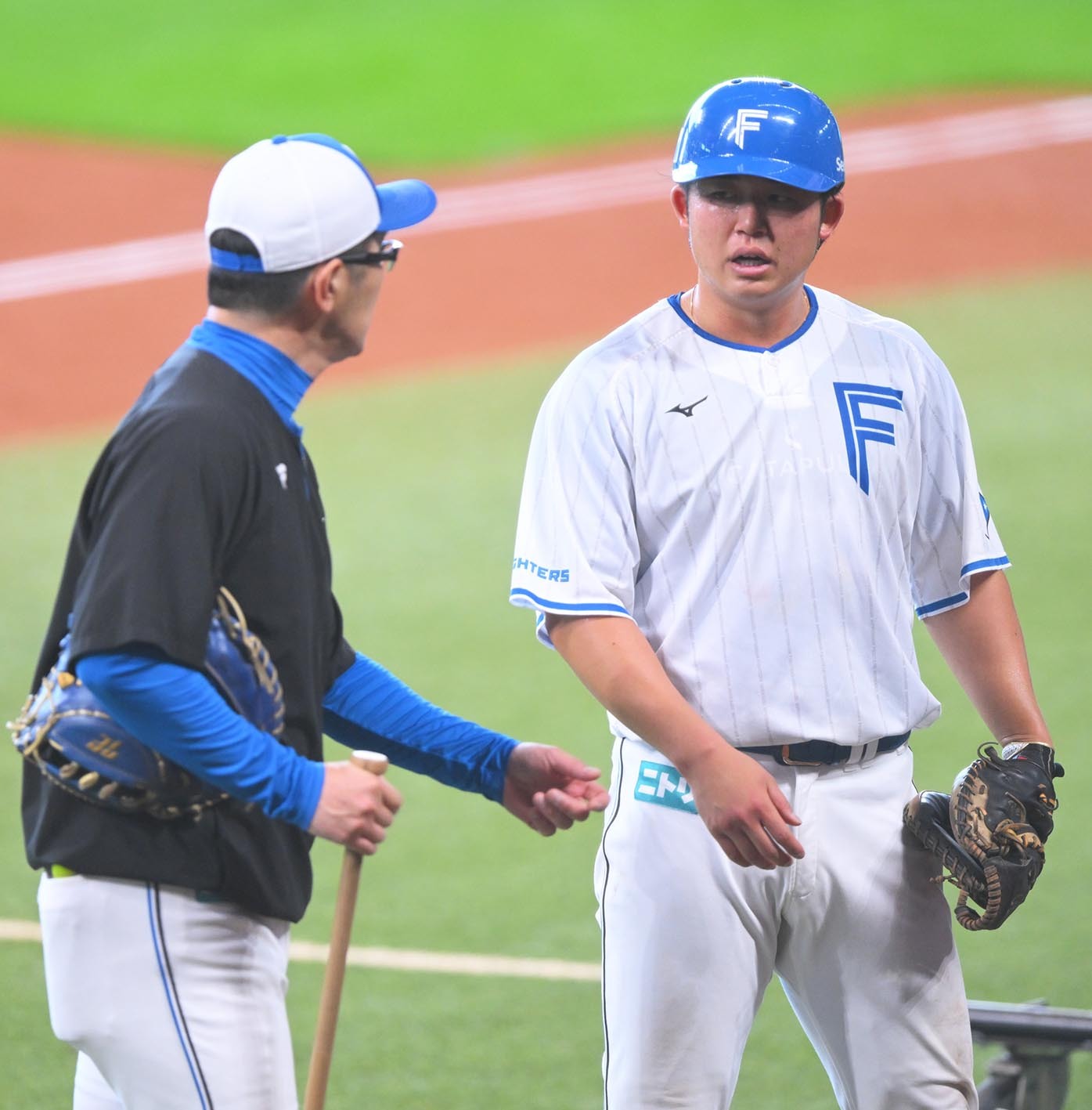 秋季キャンプ4日目となったこの日、エスコンフィールド北海道の二遊間には、繰り返し何度もノックを受け続ける進藤の姿があった。「ノーエラー10本(連続で終了のメニュー)だったんですけど、ちょっとエラーが続いてしまって。ハンドリングであったり、あとは足の運び、使い方というところを意識してやっています」と、普段から時々取り組んでいるという内野ノック練習の意図を口にした。