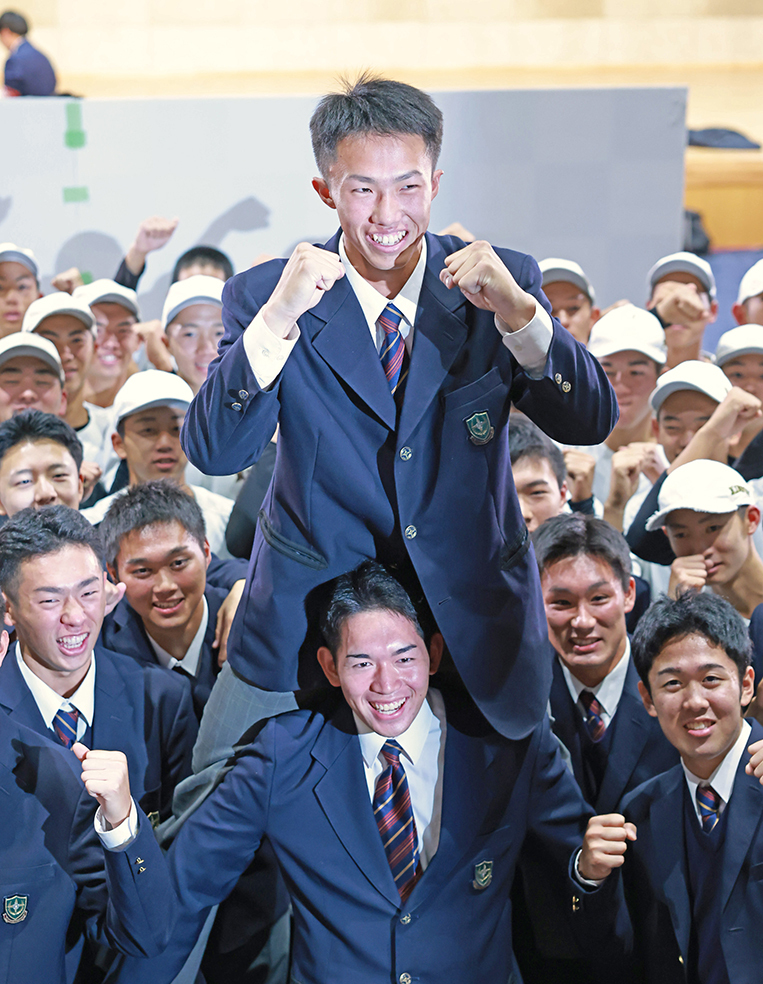 10月23日のドラフト会議でオリックスから4位指名を受けた札幌日大高の窪田(中央)