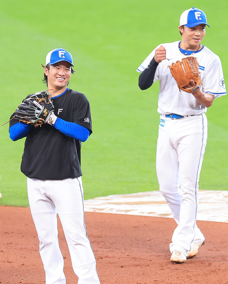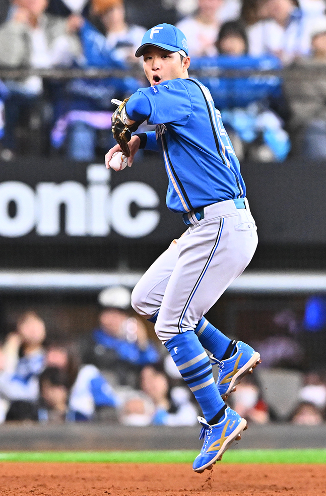 準備の一端を明かしてくれた。本拠地・エスコンでナイターの日は、午前10時くらいに寮を出る。「僕は朝に(トレーニングを)済ませたい方なので。みんなよりちょっと早いくらいですね。朝イチやっていると、あの人と会うっすね」。トレーニング場では、同じく朝型の斎藤と顔を合わすことが多かった。試合前練習では、二塁、遊撃、三塁と内野3ポジションをこなす守備職人ならではのルーティンがある。「カード頭は全部のポジションで相手の打球方向を見て」とデータをくまなくチェック。全体練習後もベンチ裏で打撃練習をこなし、試合に臨んでいた。