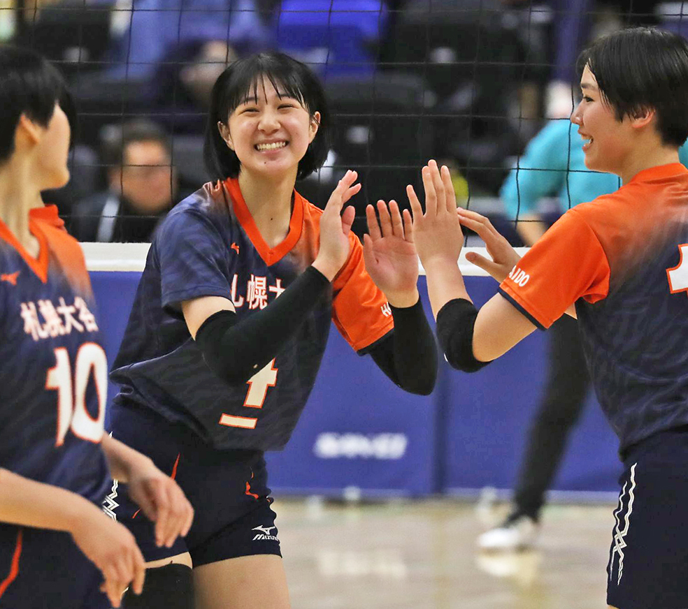 23年の本大会で3位に入った旭川実業が、全道大会5試合で1セットも落とさぬ完全勝利で、2年ぶり22度目の優勝を果たした。当時はU-19日本代表で、現在Vリーグ・クインシーズ刈谷でプレーする笠井季璃(20)が絶対的エースだったが、今年はチーム最長身の182センチのMB土屋苺花(3年)を中心とした全員バレーで、夏冬合わせて4季ぶりの全国切符をつかんだ。