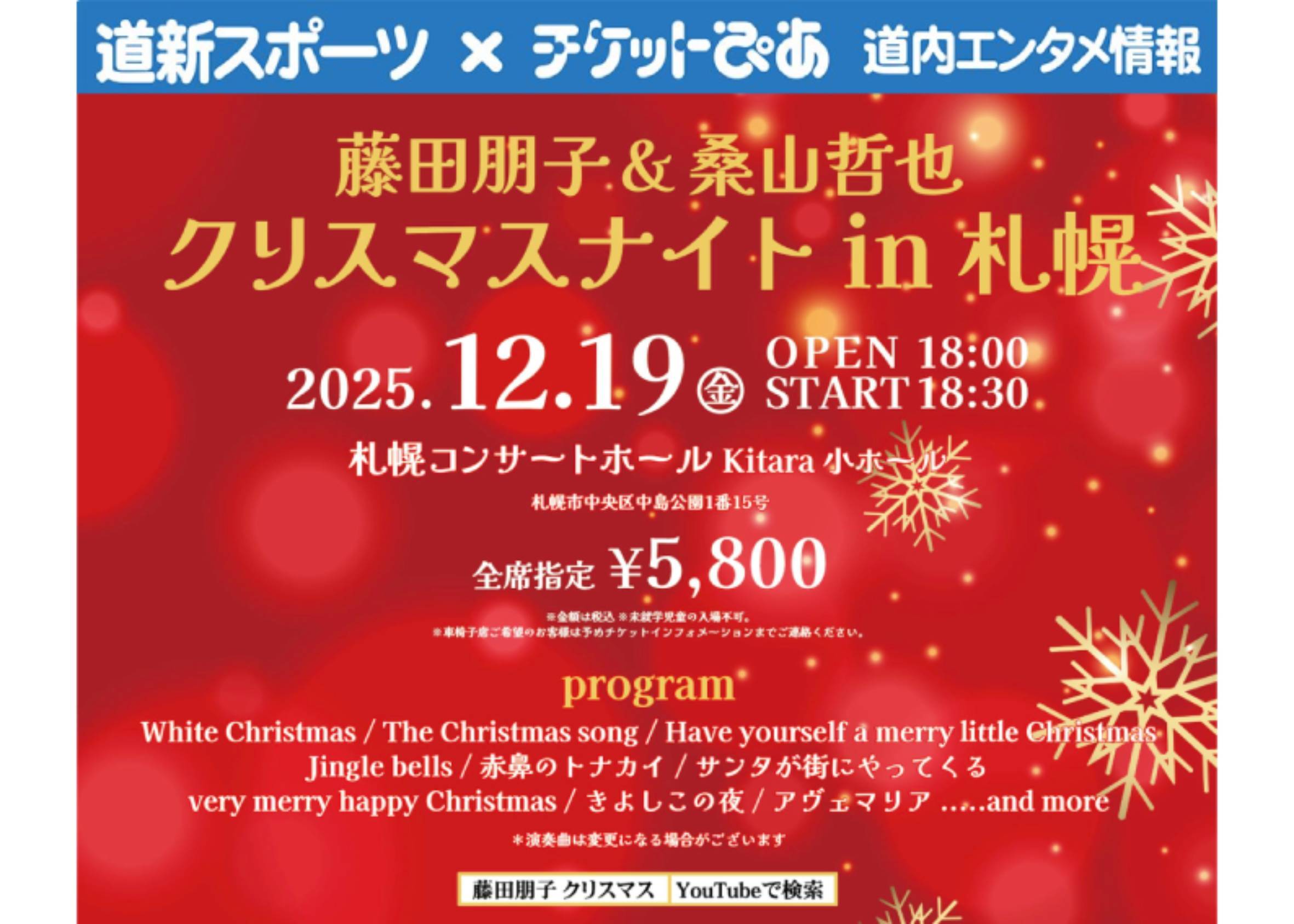 【道スポ×チケットぴあ】道内エンタメ情報 藤田朋子&桑山哲也 クリスマスナイト in 札幌