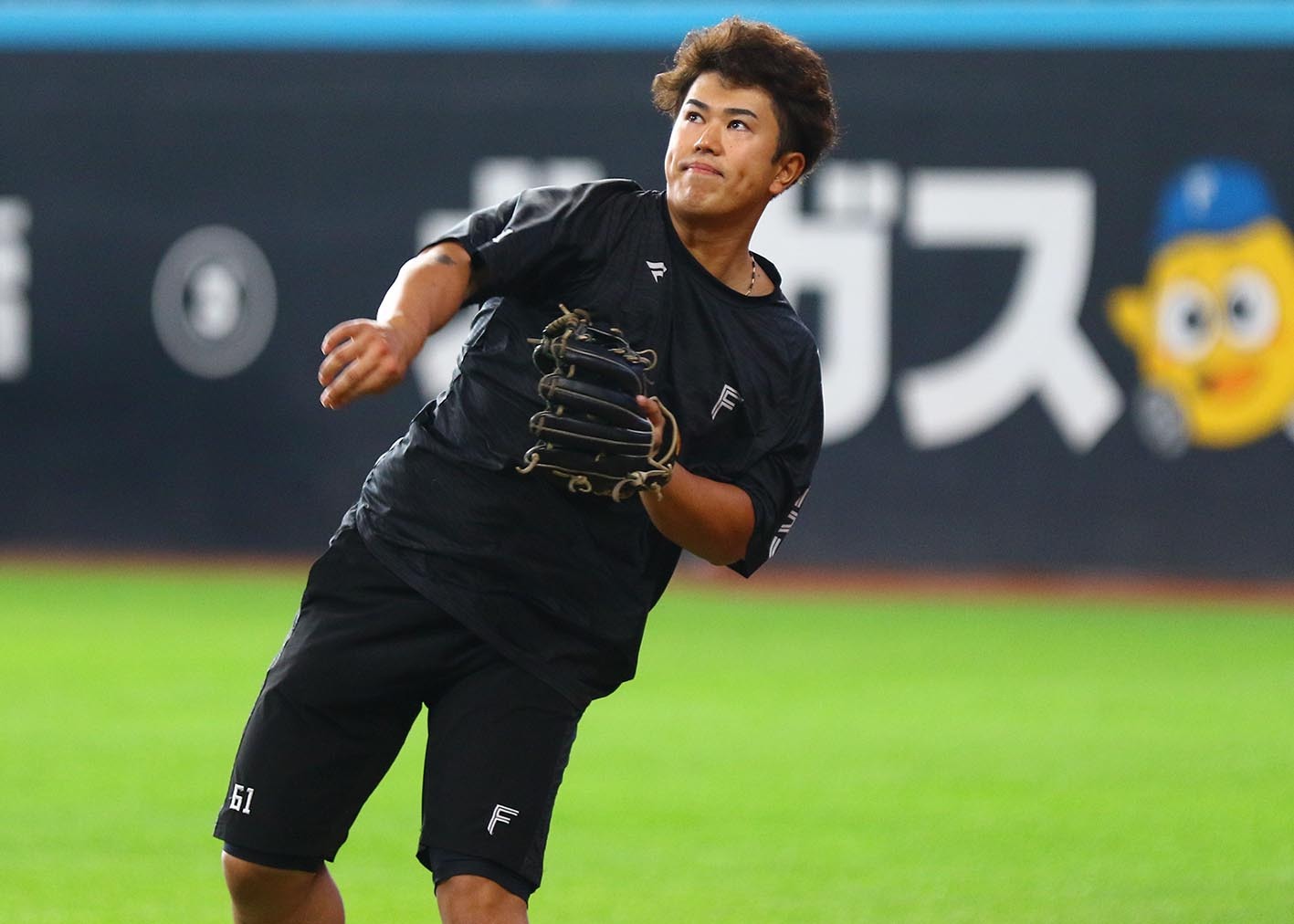 エスコンで自主トレを行う今川=撮影・榎本真之