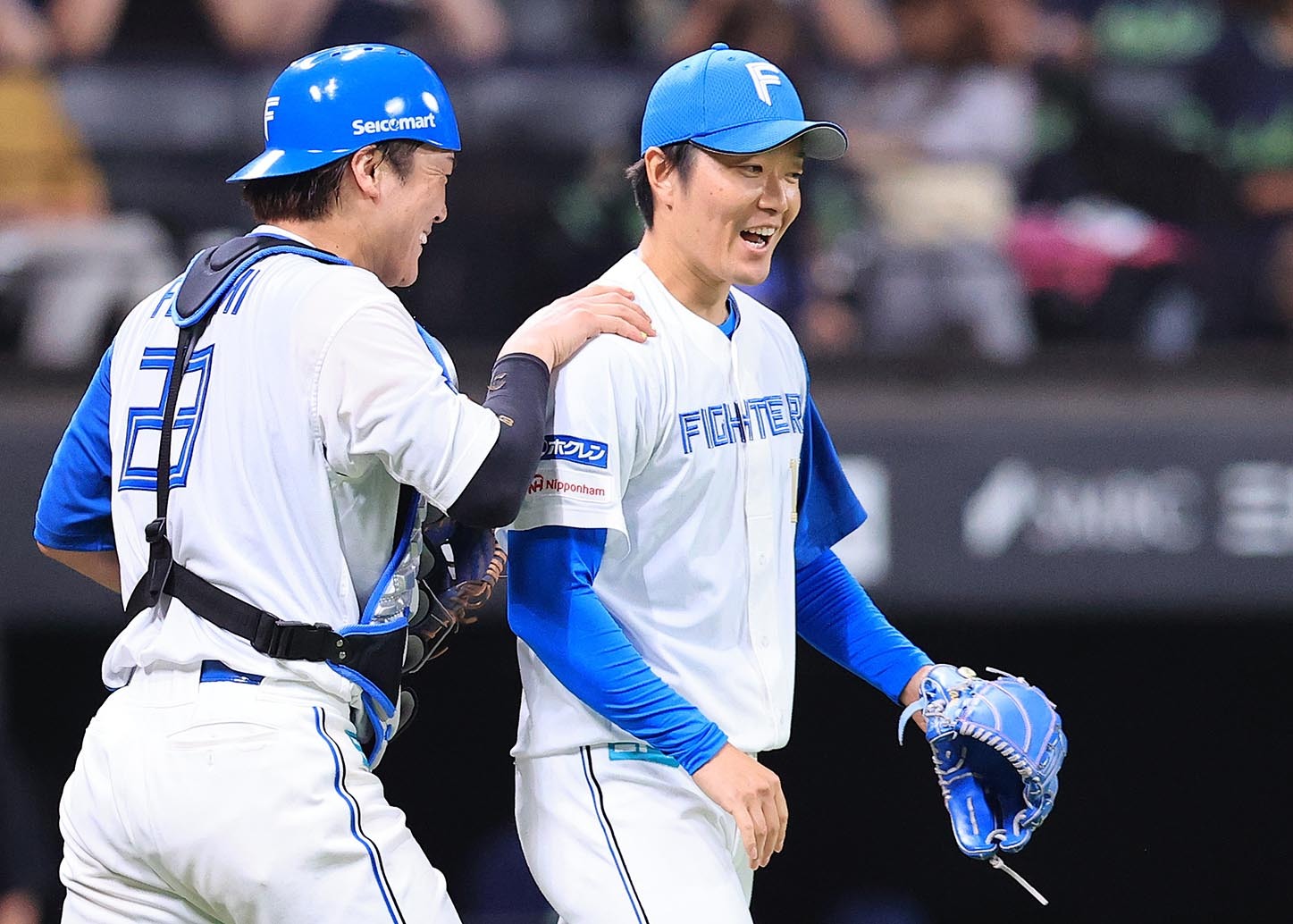 「球団の北海道移転1500勝目の試合で、最後に僕と寅威さんが組んで。道産子2人で最後を締められたというのはうれしかったなと思います」。移転22年目で達成した節目の勝利を演出した道産子コンビの勇姿は、球団史に新たな1ページとして刻まれた。
