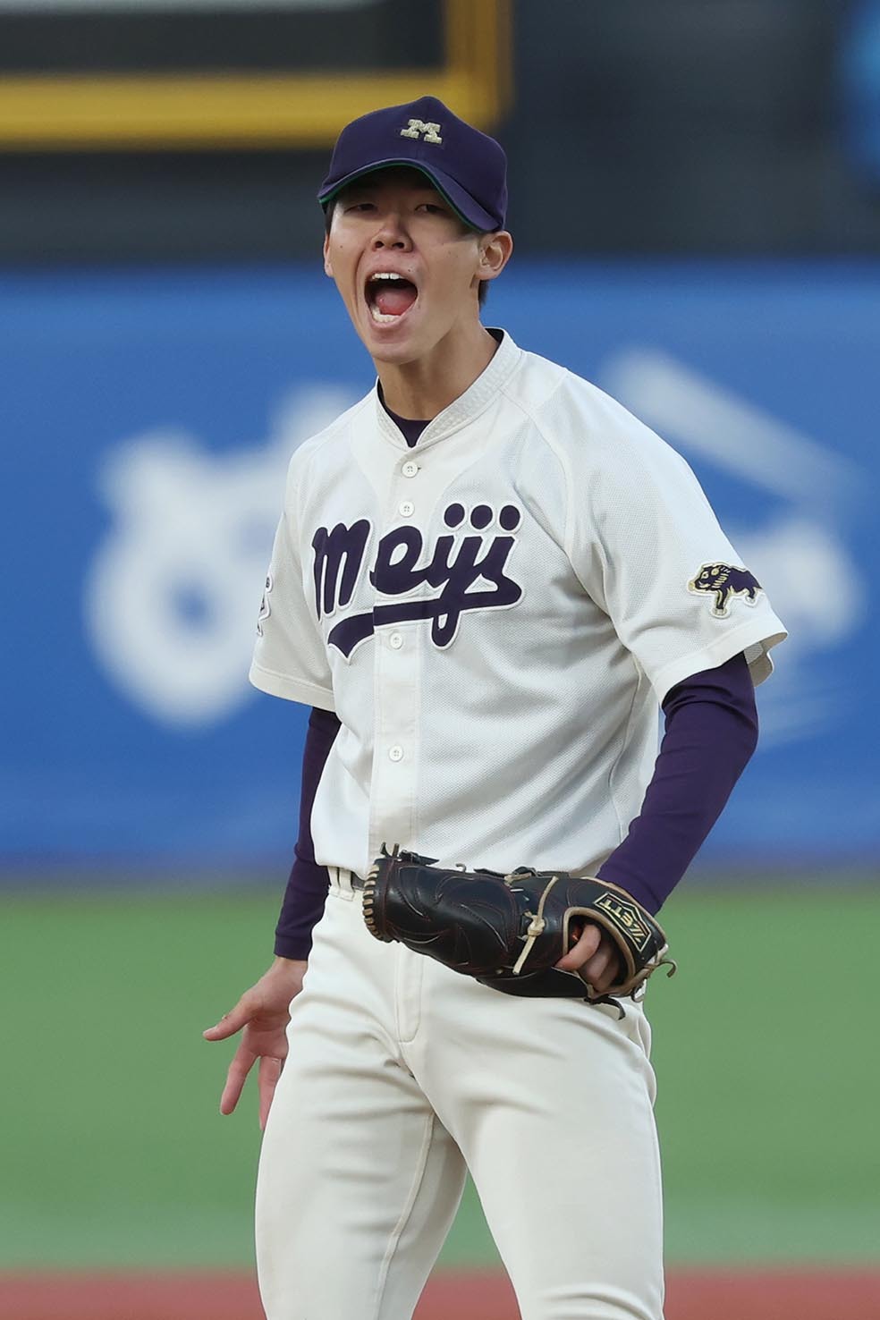 明大での4年間。ドラフト1位でプロ入りするまで成長したが、結果には納得していない。「大学野球を振り返ると、自分の中では全然、良い思いができなくて、やっと春に少し結果が出て、秋のリーグ戦は良かったんですけど、やっぱりここで最後、また打たれて負ける。最後ぐらいは笑って終わりたかったんですけど、そこは次に切り替えていくしかない」