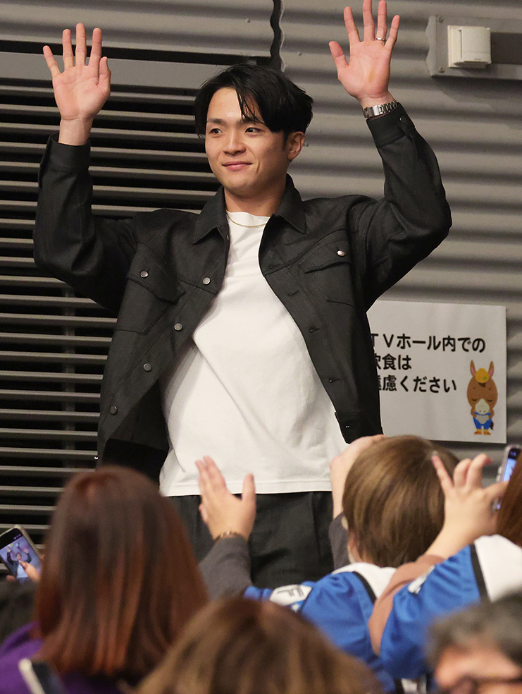 札幌で行われたニッポンハムプレゼンツプレミアムトークショーで郡司が大歓声を受けて入場する