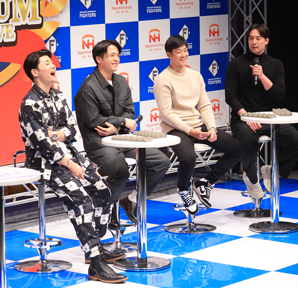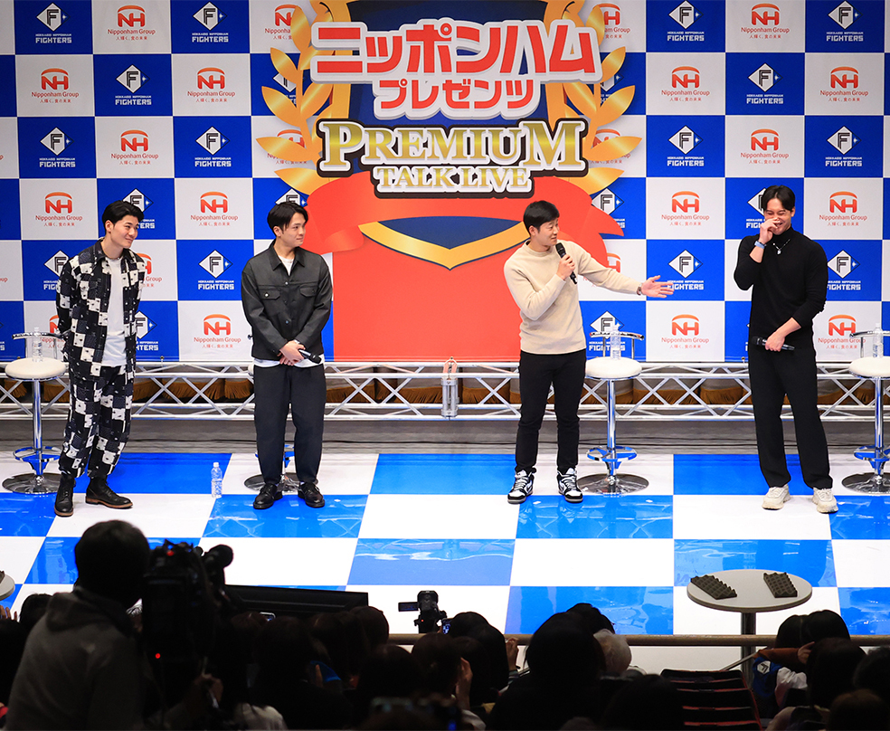 「ニッポンハムプレゼンツ プレミアムトークライブ」が18日、全道5会場で行われた。札幌会場では上原健太投手(31)、石井一成内野手(31)、郡司裕也捕手(27)、清宮幸太郎内野手(26)の4選手が登場。会場に詰めかけた多くの日本ハムファンと約2時間、ふれあいのひとときを楽しんだ。