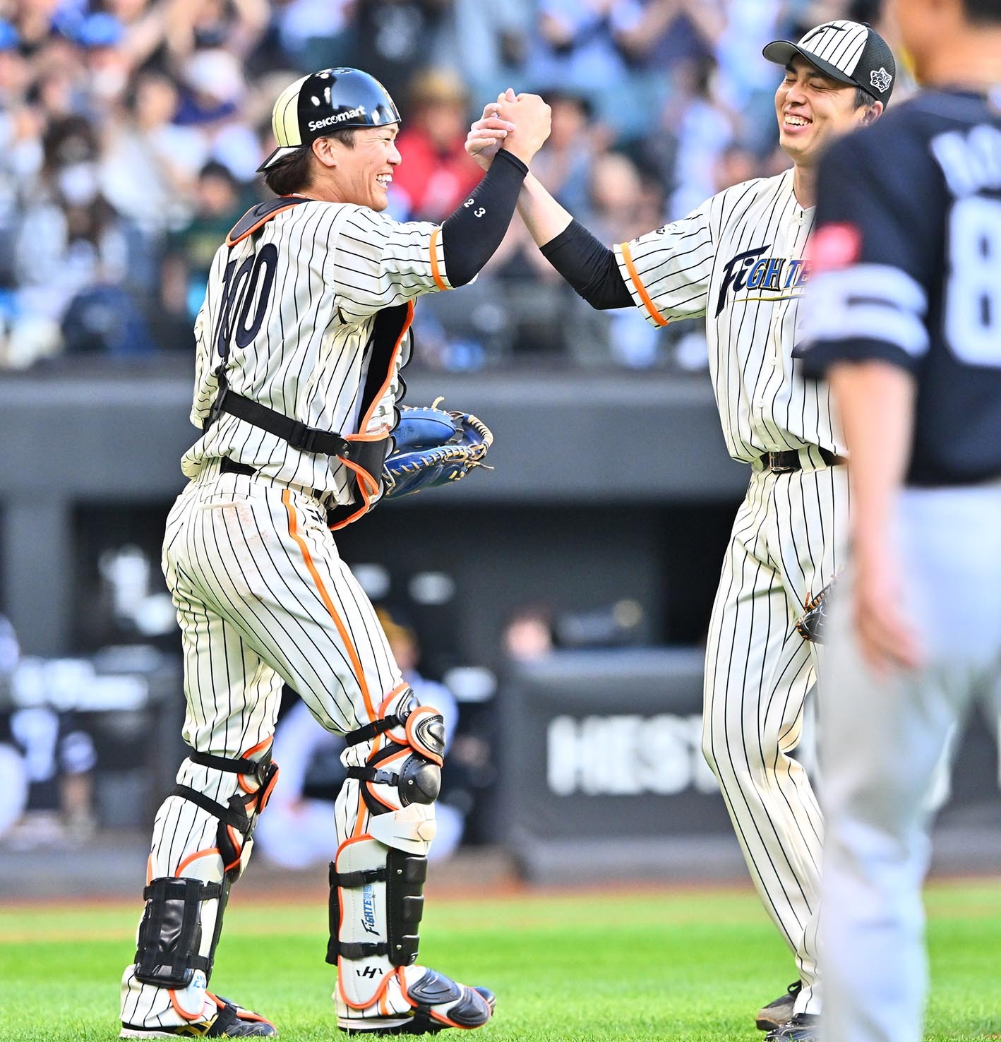 忘れられない試合がある。「神の右手ですね」。昨年7月13日にエスコンフィールドで行われたソフトバンク戦。1点差の九回を任された田中は、九回1死一、二塁のピンチを背負った。「前日、やられていたんですよ。(同点)ホームラン打たれていて。2日連続やられると、なかなか厳しいので。盗塁を刺してくれて、ファウルチップも捕ってくれて。24年は、あの試合でセーブ失敗していたらどうだっただろうなっていう思いはあります」。伏見が二塁走者・周東の三盗を阻止し、最後は2死一塁の場面でファウルチップを好捕し、試合を終わらせた。SNSなどで〝神の右手〟と話題になったプレーは、今も脳裏に焼き付いているという。