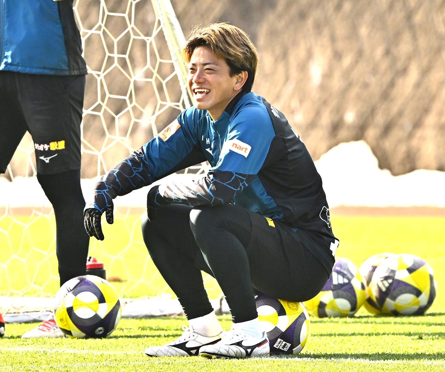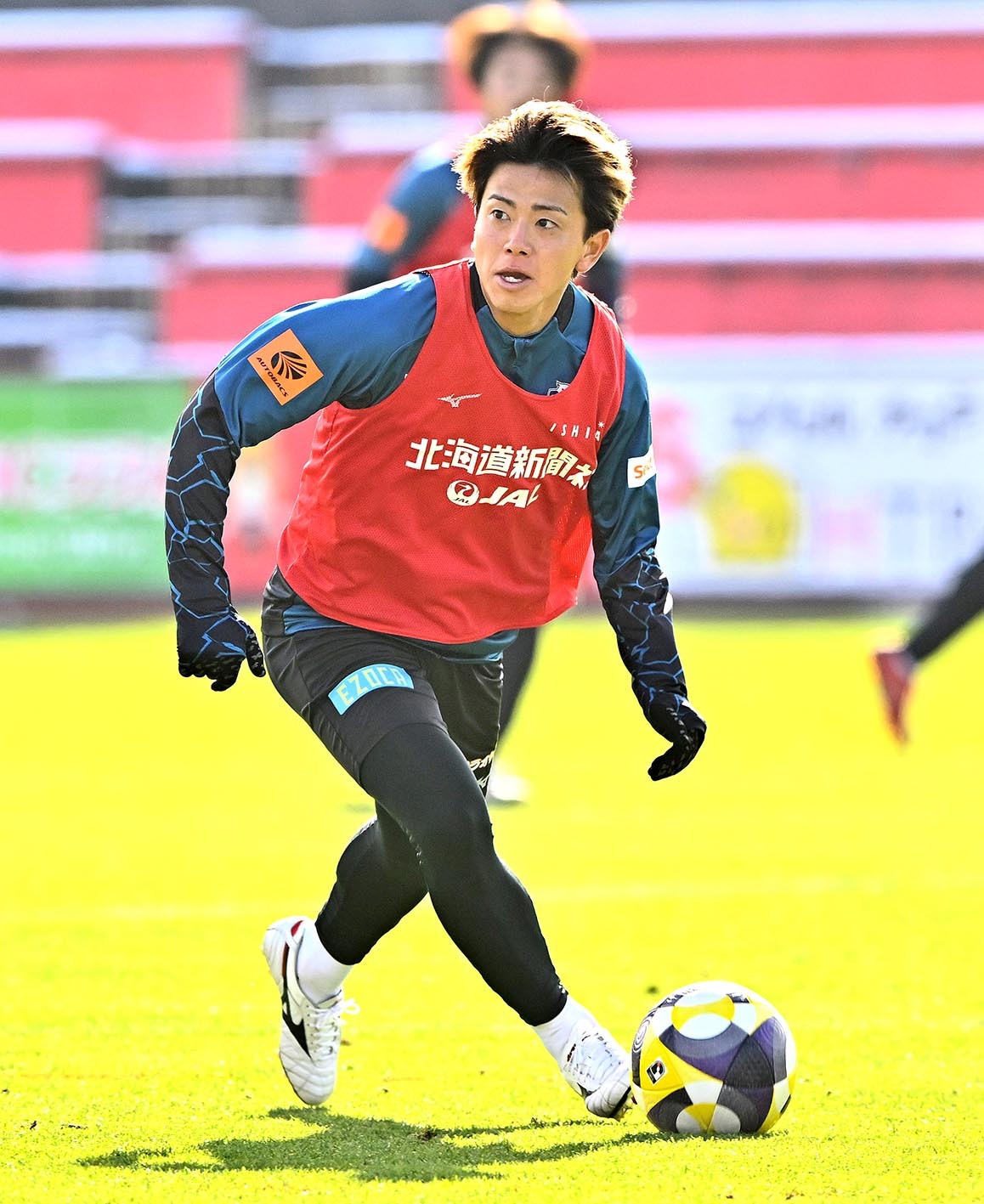 練習前、準備するMF長谷川=撮影・桜田史宏