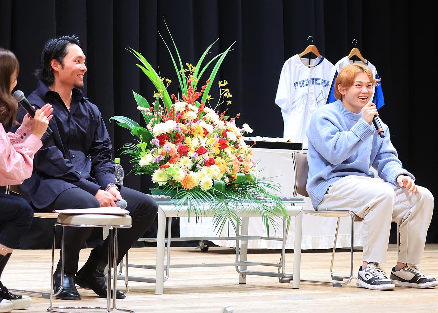 日本ハムの伊藤大海投手(28)と田宮裕涼捕手(25)が「応援大使プロジェクト」の一環で、小樽市で行われたトークショー&抽選会に参加。来場者からの「ファイターズいち私服がおしゃれな方は誰ですか?」という質問に、今季8勝を挙げてブレークした高卒4年目右腕の名を挙げた。