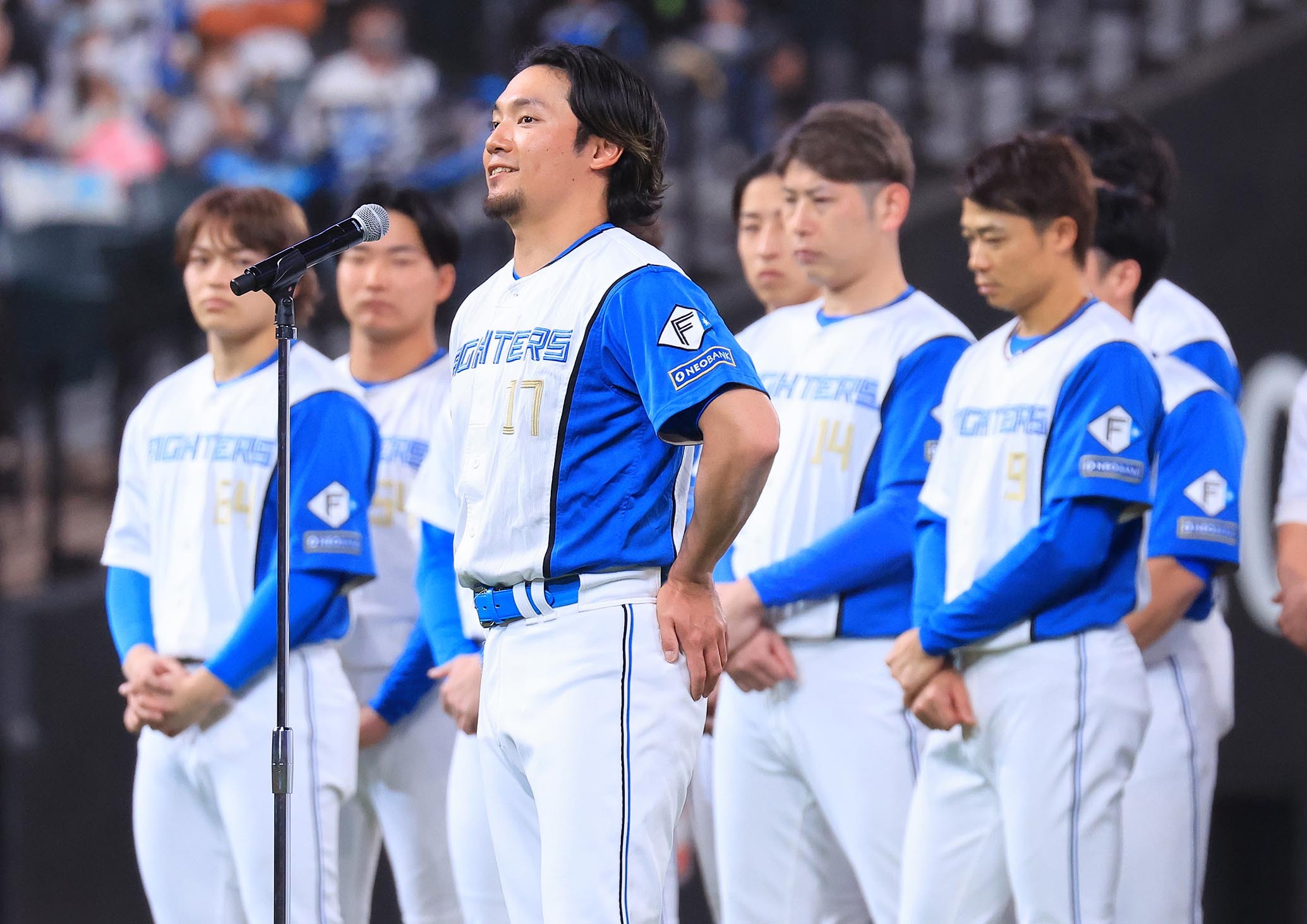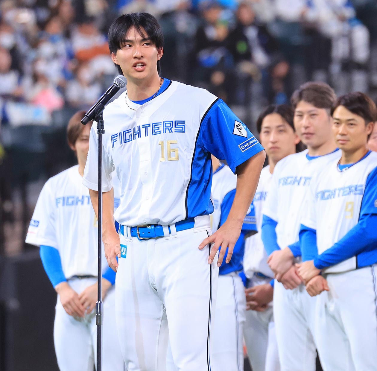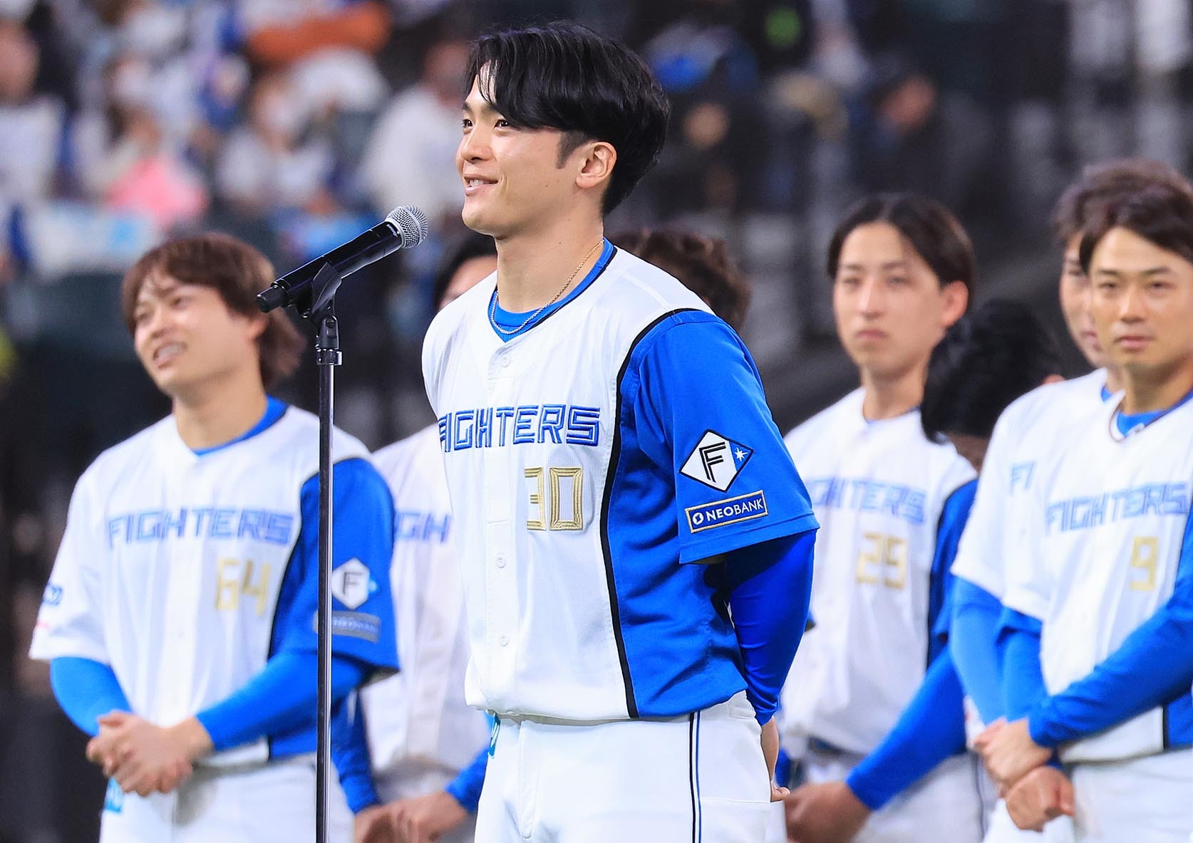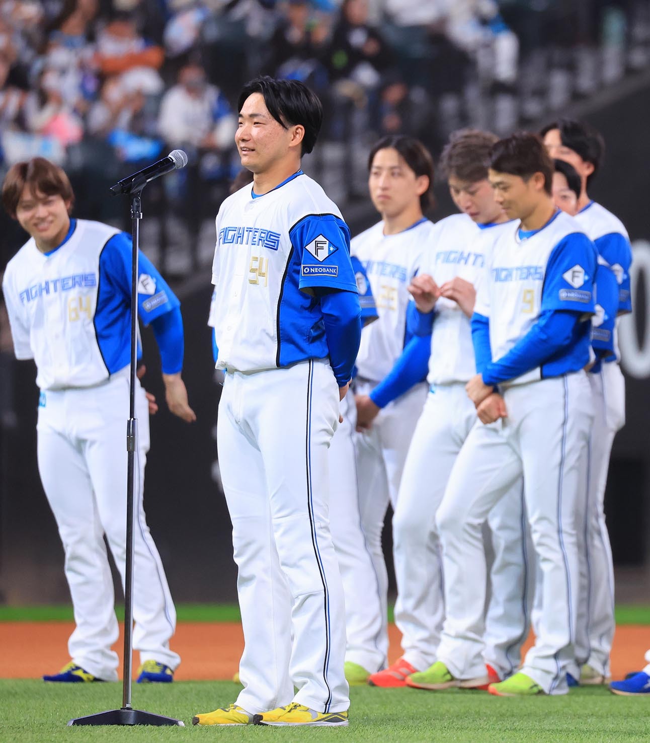 伊藤「2026年の開幕投手を務めさせていただきます、伊藤です。最後に悔しい思いをしましたし、選手はもちろん、ファンの皆さんも同じだと思います。こういう巡り合わせになり、勢いを付けてファイターズの年になると確信しています。まず開幕、しっかり取ってホームに戻ってこられるように楽しんでやってまいります。応援よろしくお願いします」