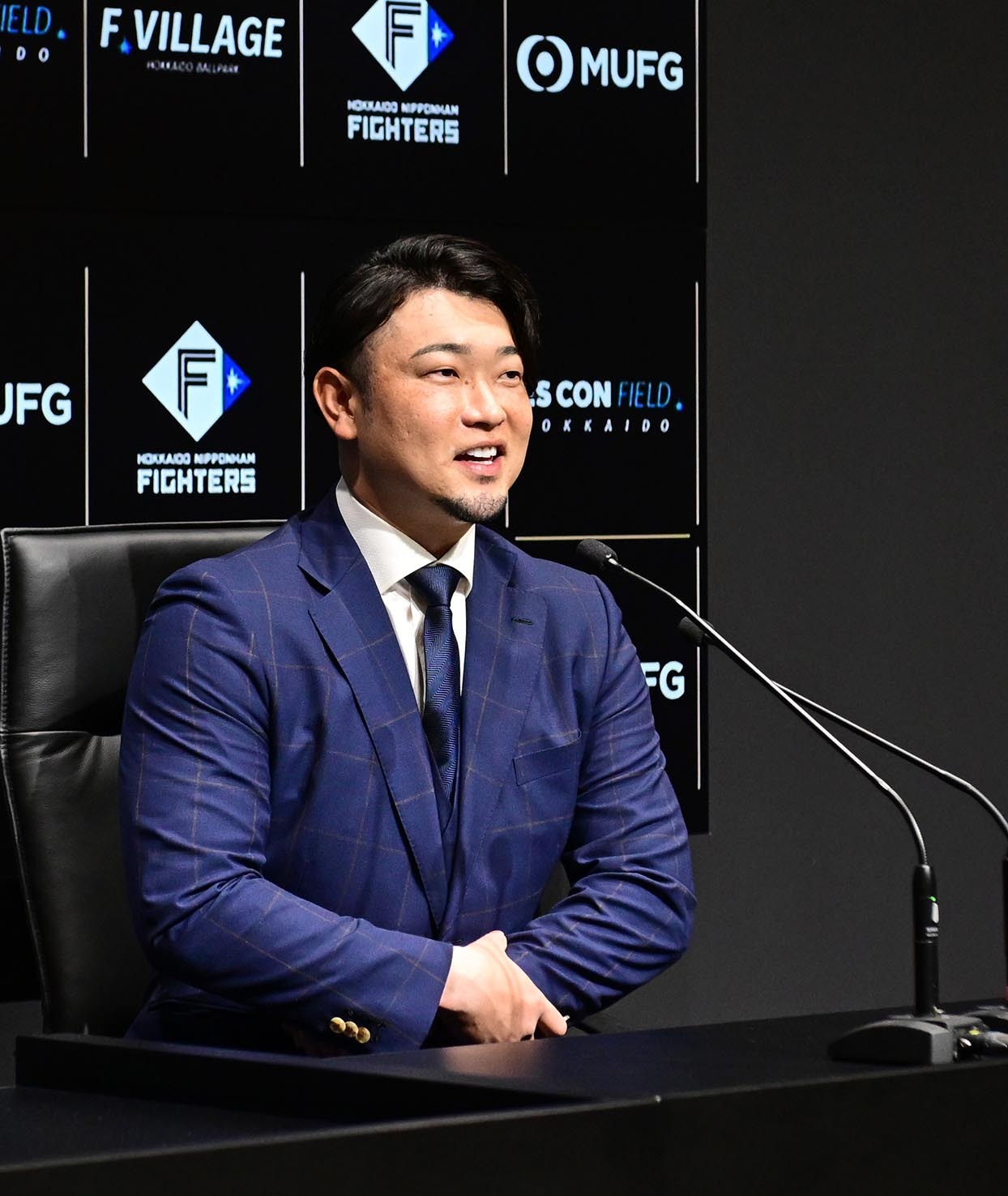 「今、話した通り、ラストピースになりきれなかったので、しっかり状態を上げてファイターズの優勝に、その一員になれるように頑張りたいと思います。応援よろしくお願いします」