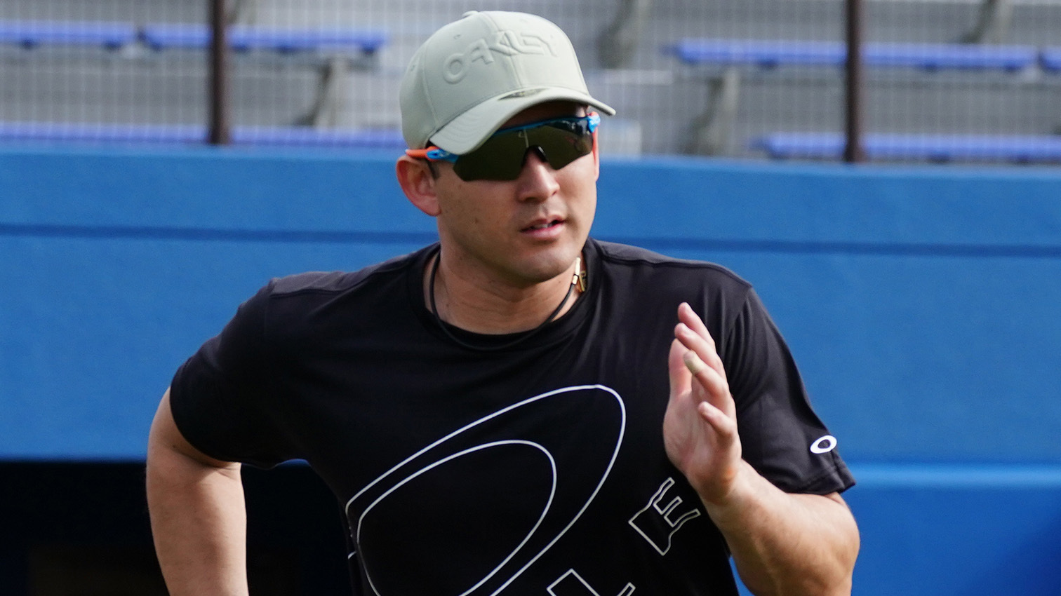 昨年12月から島にこもり、専門トレーナーの指導を受けながら、ハードな練習メニューをこなしてきた。シーズン終了時から体重は3、4キロ増加。服を着ていても分かるほど、上半身の筋肉が発達していた。「剛(松本)から『ゴリラみたいになりましたね』と言われた」と明かし「やっぱりお風呂で自分の裸を見る時間は長くなりました」と不敵に笑った。
