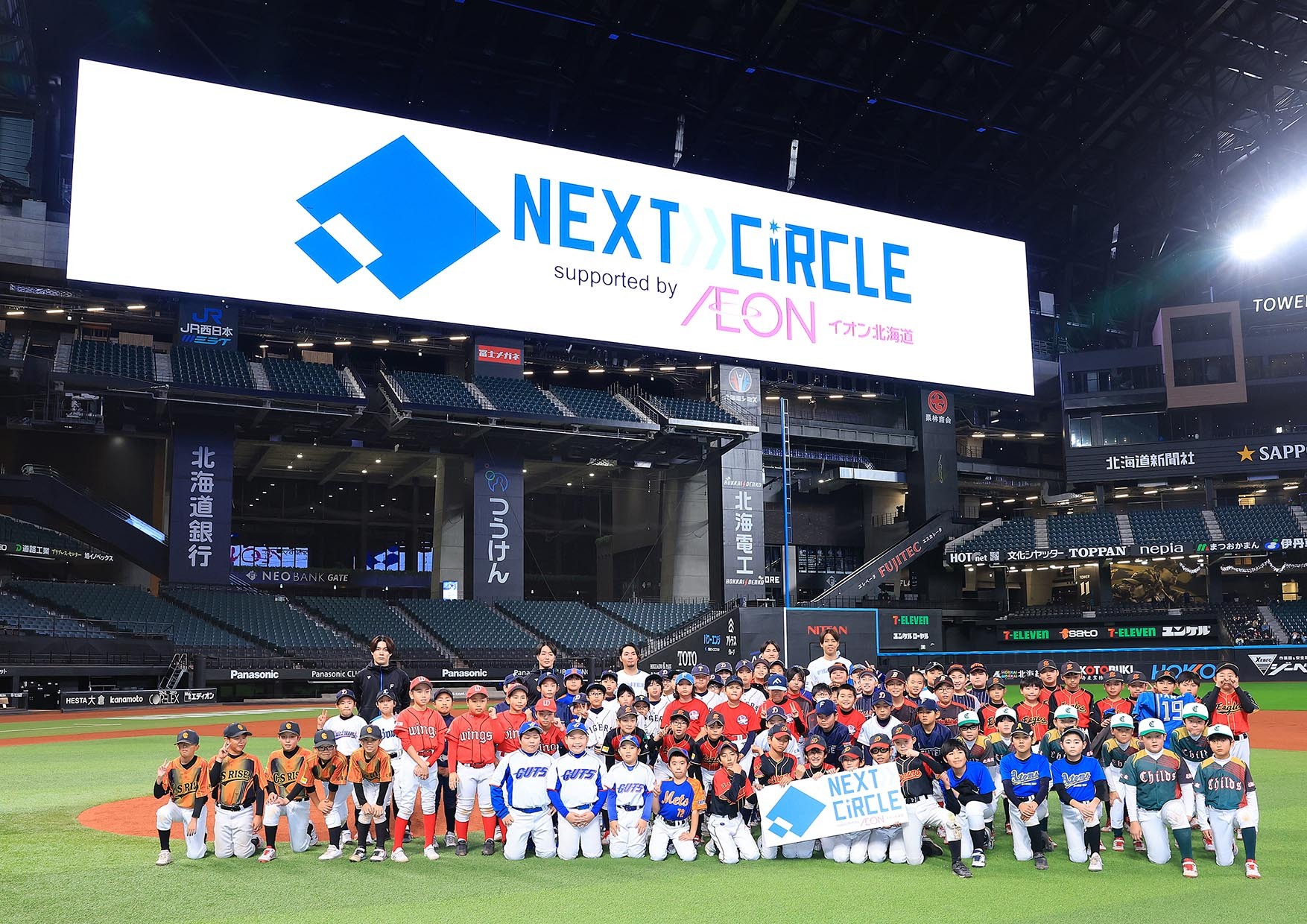 「ネクスト・サークル」は、9人揃わずに少人数で野球をしている小中学生も、野球への意欲を持ち続けられるように―という願いをこめて、北海道出身の日本ハム選手たちが「チーム北海道」として野球教室や用具支援などを行っているもの。