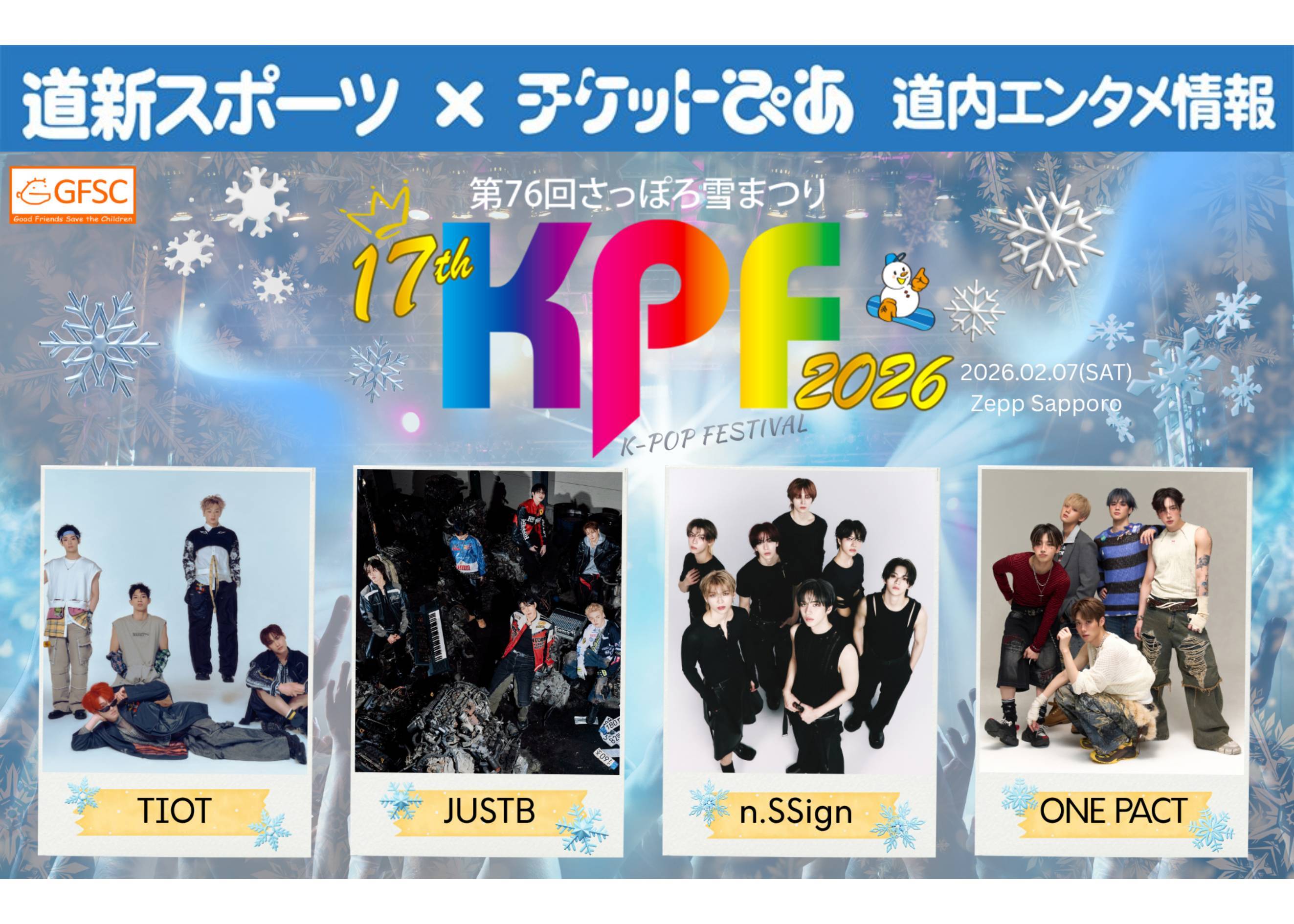 今回の「道新スポーツ×チケットぴあ」のエンタメ情報は、「第76回さっぽろ雪まつり17th KPF2026」です。毎年恒例の北海道で17年続く夢のK-POP合同音楽フェスです。4組の大注目BOYSグループが北の大地を熱くします。有料会員限定でチケットを各公演1組2人にプレゼントします。応募は12月15日まで、応募方法は記事の最後に記載します。