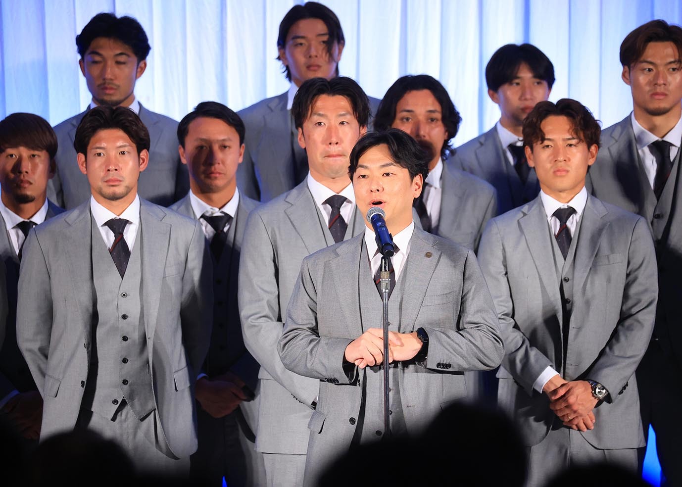 就任1年目を終えた石水創社長(43)は今季の全試合を観戦したといい、「私はこの1年間動き回って、コンサドーレのパートナー企業は日本一だなと改めて感じました。チームは今年1年、良い時もあれば悪い時もあり、紆余曲折を経て乗り越えてきたんですけれども、パートナー企業の皆様のおかげで、このチーム、クラブ、選手、みんな頑張ってこれたと思っております。本当に感謝しております」と、一年間の感謝の気持ちを伝えた。