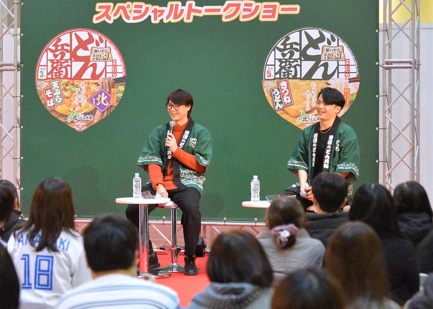 日本ハムの山崎福也投手(33)と郡司裕也捕手(27)が6日、新さっぽろサンピアザで行われた「日清のどん兵衛×FFFFFスペシャルトークショー」に出演した。トークやゲームコーナーなど約1時間にわたるイベントで、会場に詰めかけた大勢のファンを笑顔にしていた。今季2人はレギュラーシーズン3試合で先発バッテリーを結成。このコンビには様々な数字が裏付ける相性の良さがあり、来季はさらに期待が掛かる。