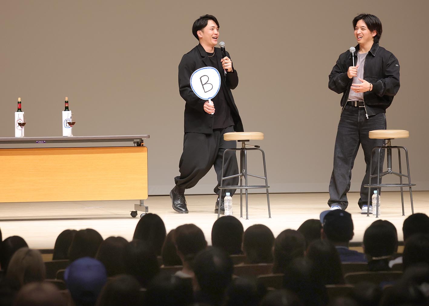 拍手と大歓声の中、ステージに上がった郡司は広いホールを見渡し「めちゃくちゃ気持ちいいです。確実に全員、僕の味方な訳じゃないですか。何を言っても許されそう」とご満悦。続いて姿を現した山本も「コンサートとかやる場所じゃないですか。すごいですよね」と感嘆の声を挙げた。