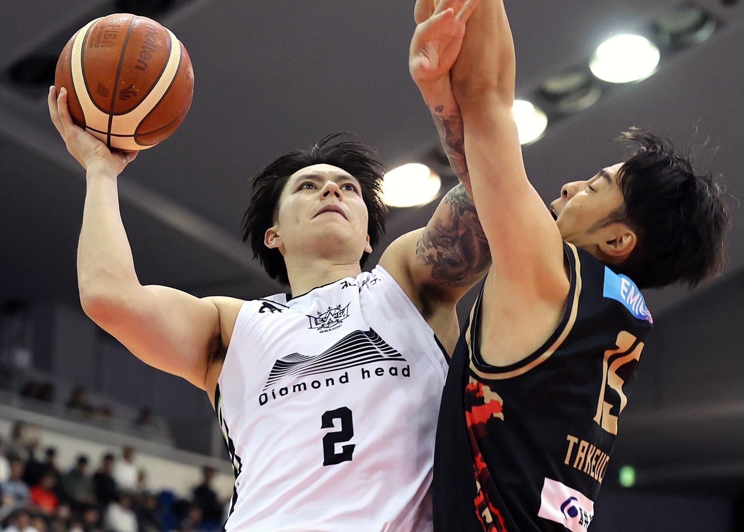 第2クオーター、ドリブルで攻め上がる星野(左)