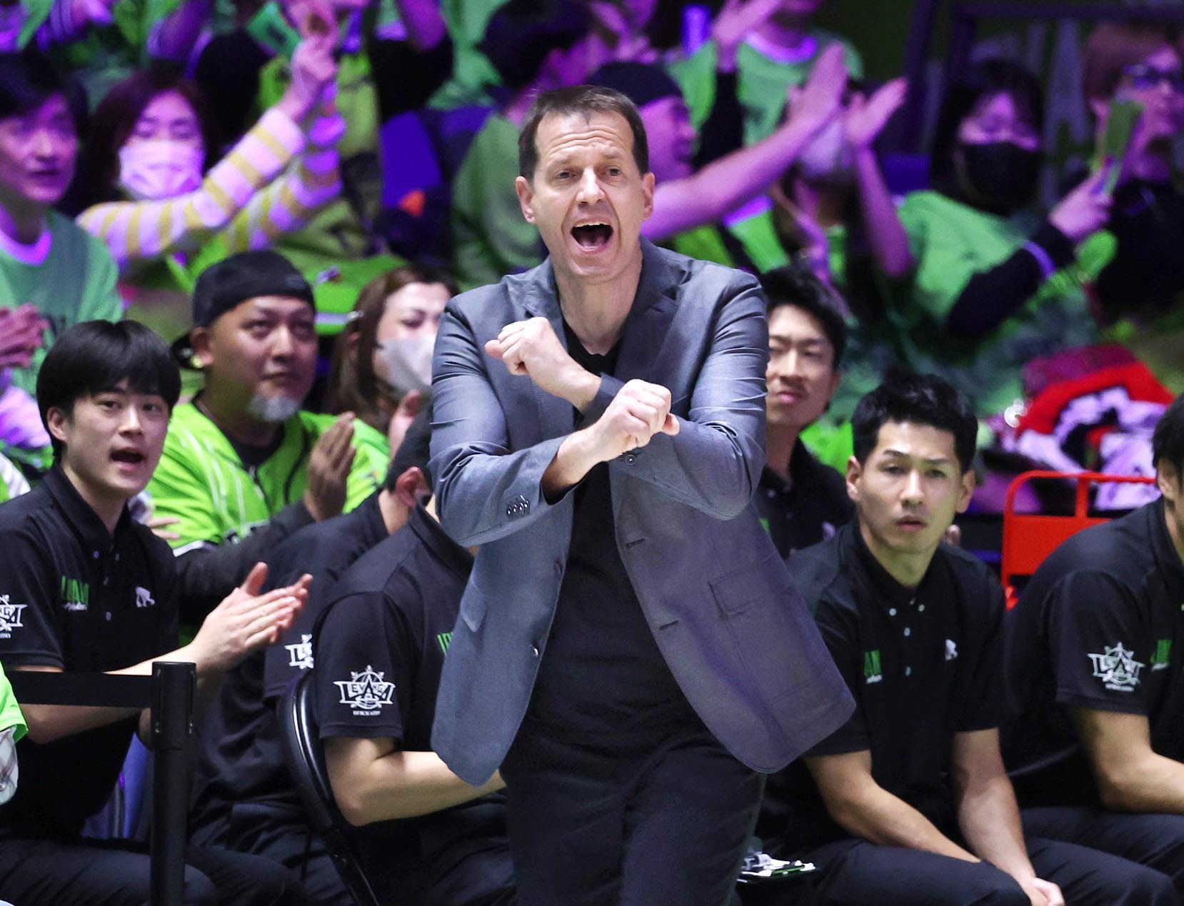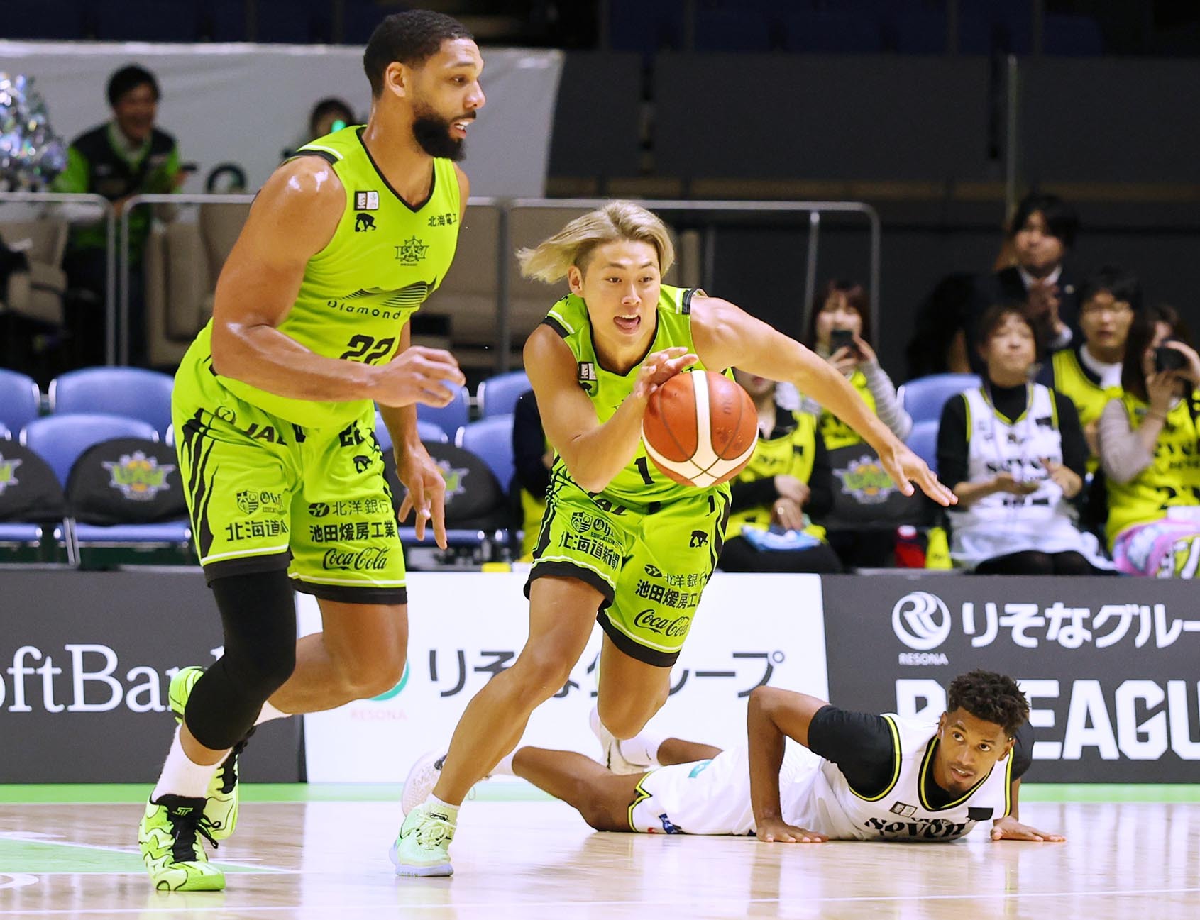 Bリーグ1部(B1)レバンガ北海道の勢いが止まらない。12月7日までに20試合を終え、16勝4敗。強豪宇都宮ブレックス、千葉ジェッツと勝率で並び得失点差で東地区3位。夢のような展開を誰が予想しただろうか。パリ五輪代表の富永啓生(24)や、「レバンガ史上最高の助っ人」と称されるジャリル・オカフォー(29)など新加入選手の活躍に加え、ドワイト・ラモス(27)や島谷怜(25)も昨季以上の活躍ぶりだ。かつて無い強力布陣を率いるのは、14季ぶり復帰となったトーステン・ロイブルHC(53)。前回のHC時代、あと一歩でプレーオフ進出まで迫ったことをブースターたちは忘れていない。2016年のBリーグ発足以来、シーズン成績は全て負け越していたチームが、接戦をものにして着実に勝ち星を重ねる姿を、写真で振り返る。(撮影・西野正史、中川明紀、宮永春希、東倫太朗)