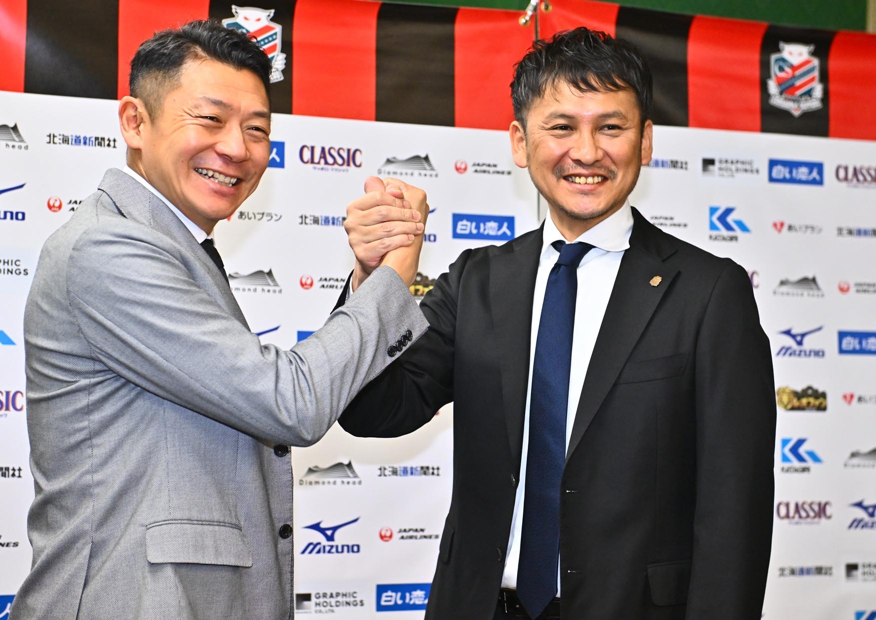「この1年、クラブとして非常に不安定な時期だった。社長の交代から始まり、GMがいなくなり、監督が代わり、そして柴田が代わり、非常にファン・サポーター、選手、スタッフに対しても100%サッカーに集中できる環境を作れていたわけではない。そこの修正はしていきたい。クラブとしていろんなビジョンがありますけど、フットボールの観点では、まず短期的な目標としてはJ1昇格、僕はマストで間違いなく思っている。数年後にはしっかりJ1に定着しながら、数年に一度タイトルを獲り、北海道に夢や希望を与えられるクラブになれればいい」