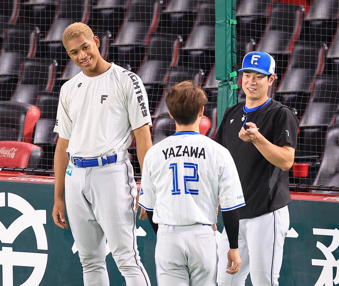 「ぐんちゃん。郡司ね。変わったね。すごいですね。人って数年で変わるんだなっていうのを体現した選手だし、1年で人生変えて。新庄さんも3日で変わるとか言ってますけど、そういうのを今回、より体現した選手だし、ファイターズでは外様だけど〝顔〟みたいになってきているので。あの感じでやっていってほしいなと思うし、自分に対してちょっと控えめなところもあるので。一歩引けるところがあるので、もっともっとガンガン前面に出してやっていってほしいなって思います。同じ右バッターで僕も勉強することあるし、これからもたぶんプレイヤーとして見続けると思います。先輩に飯連れて行ってもらうイベントがなくなると言っていた? 金稼いでるので大丈夫です(笑)」