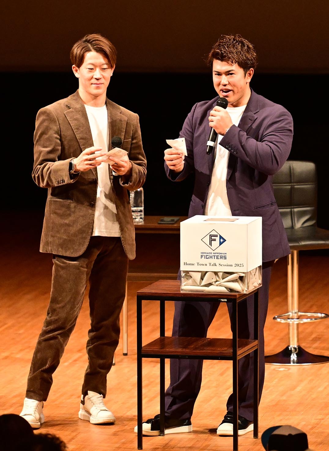 日本ハムの今川優馬外野手(28)と矢沢宏太投手兼外野手(25)が18日、北広島市内で行われた「Hometown Talk Session 2025」に出演した。イベント前に行われた囲み取材では、新たな陣容で臨む来季の外野手争いに向けて、それぞれが意気込みを口にした。