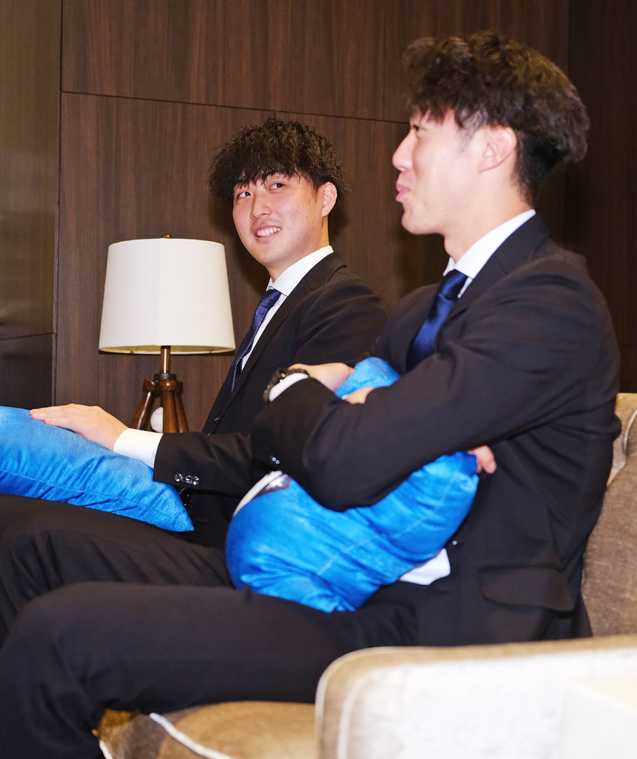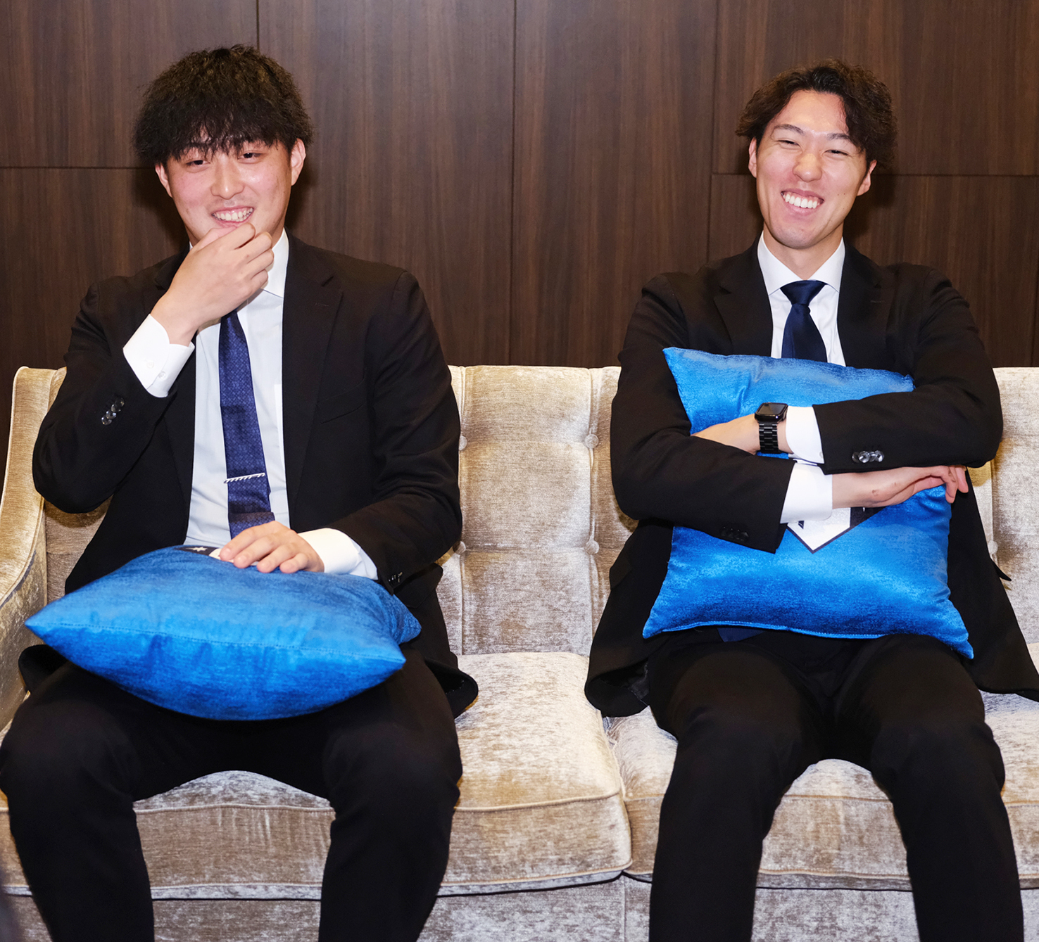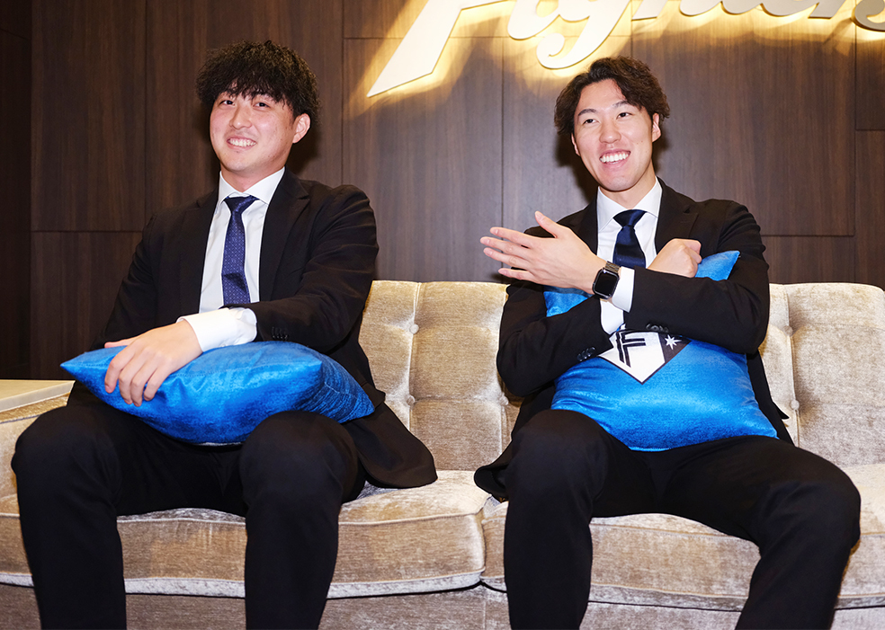 日本ハムの福島蓮投手(22)と柳川大晟投手(22)が道新スポーツデジタルの特別対談に登場。2025年は先発、抑えとして主力投手陣の仲間入りを果たし、ネクスト大ブレークが現実味を帯びている。互いをよく知る同学年コンビが野球やプライベートに関する気になる直球質問に回答。どちらが優れているか検証してもらい、素顔に迫った。前編は野球編(ファッションや恋愛の話題が飛び出した後編は1月2日に掲載予定)