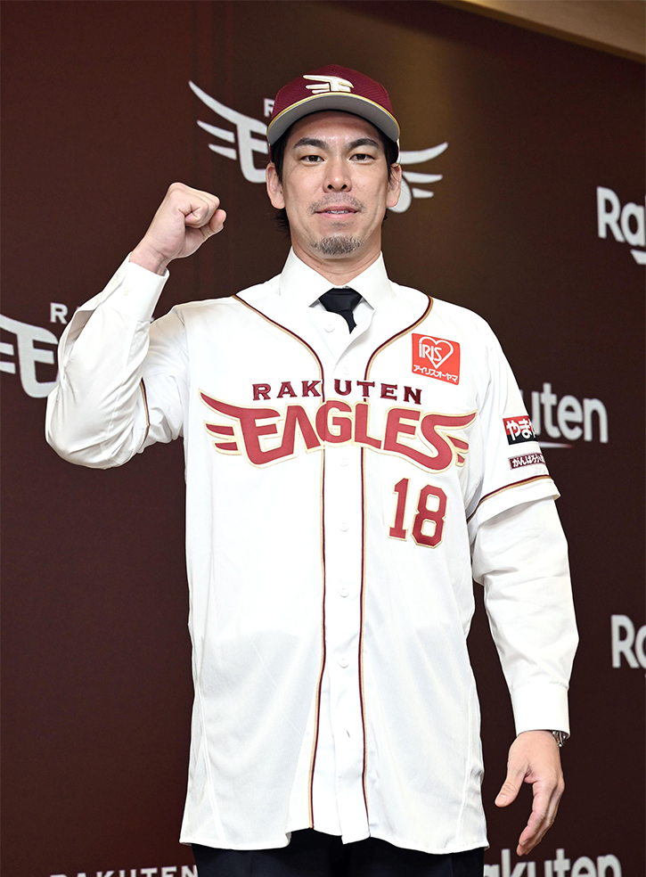 楽天のユニホーム姿を披露する、来季11年ぶりに日本球界復帰を果たす前田