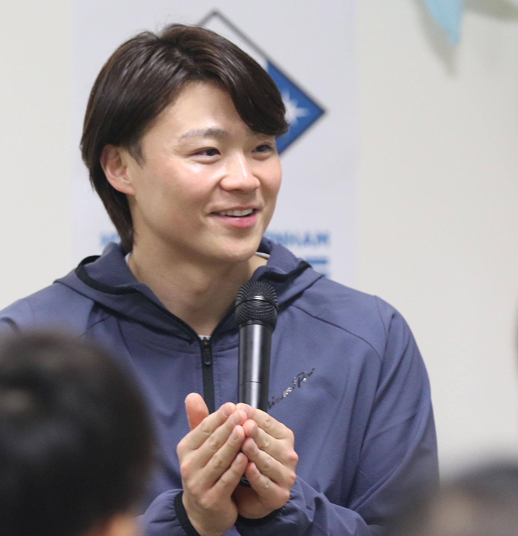最後はサンタの帽子を被って、参加者にプレゼントを贈呈。子どもたちから寄せ書きを贈られ、打席に入る際の応援歌の大合唱でエールを送られると「僕はピッチャーなのでなかなか(応援歌が)流れない。たくさん流れるように頑張ります」と笑顔をのぞかせた。