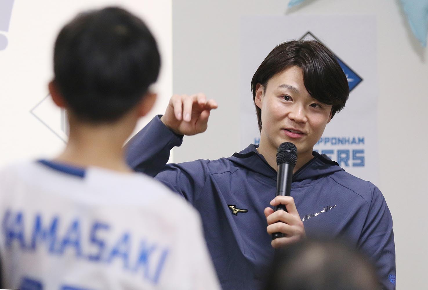 日本ハムの山崎福也投手(33)が20日、小児がんなど難病の患者家族のための総合支援センター「アフラックペアレンツハウス亀戸」(東京都江東区)を訪問。闘病中の子どもと、その家族ら22人とクイズ、キャッチボールなどで交流した。