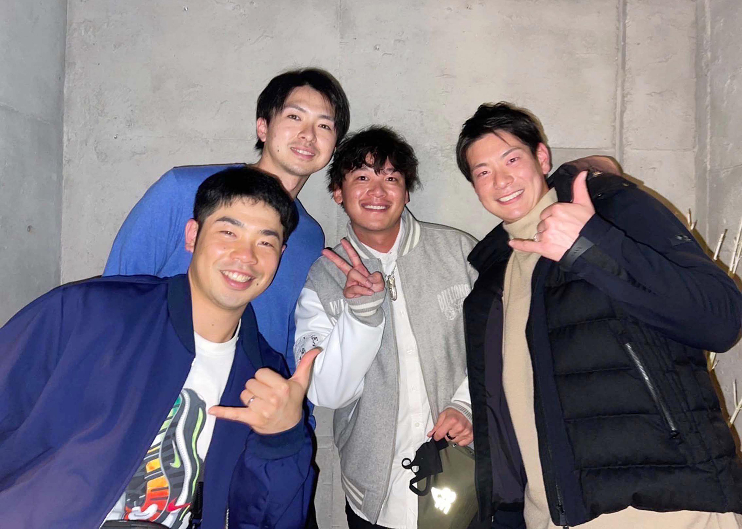 今でも深い交流は続いている(左から)近藤、上沢、石川、松本剛の同期4人=提供写真