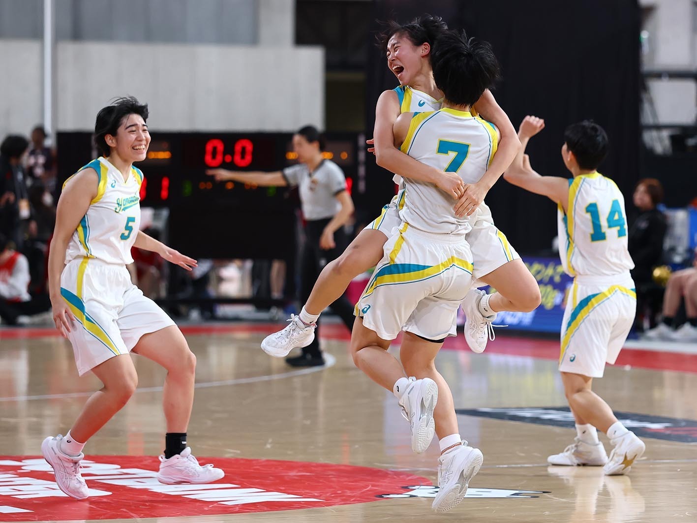 ゲームセットの瞬間、コート上の5人も、ベンチにいた古賀も、まるで優勝したかのように喜びを爆発させた。「すごくうれしい。ディフェンスが離れてて、積極的に行けって言われてたので、打って入れることができました」。ベンチポイント25点中、古賀が3点シュート2本を含め10得点。チーム全体でもスタメン出場の松口杏那(3年)に並び、2番手をマークするなど、伏兵が大仕事をやってのけた。