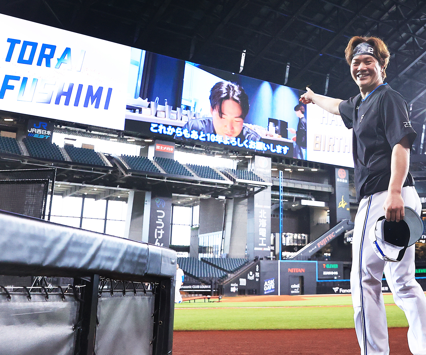 練習前に翌5月12日に誕生日を迎える伏見のバースデーサプライズが行われた。仲が良い池田が仕掛け人となり、大型ビジョンでチームメートから集めたメッセージを流した。右腕自ら撮影したこともあり、女房役をイジるコメントも。それぞれの個性が出た祝福の言葉に、伏見は「変にかしこまらず、面白かったです」とうれしそうだった。