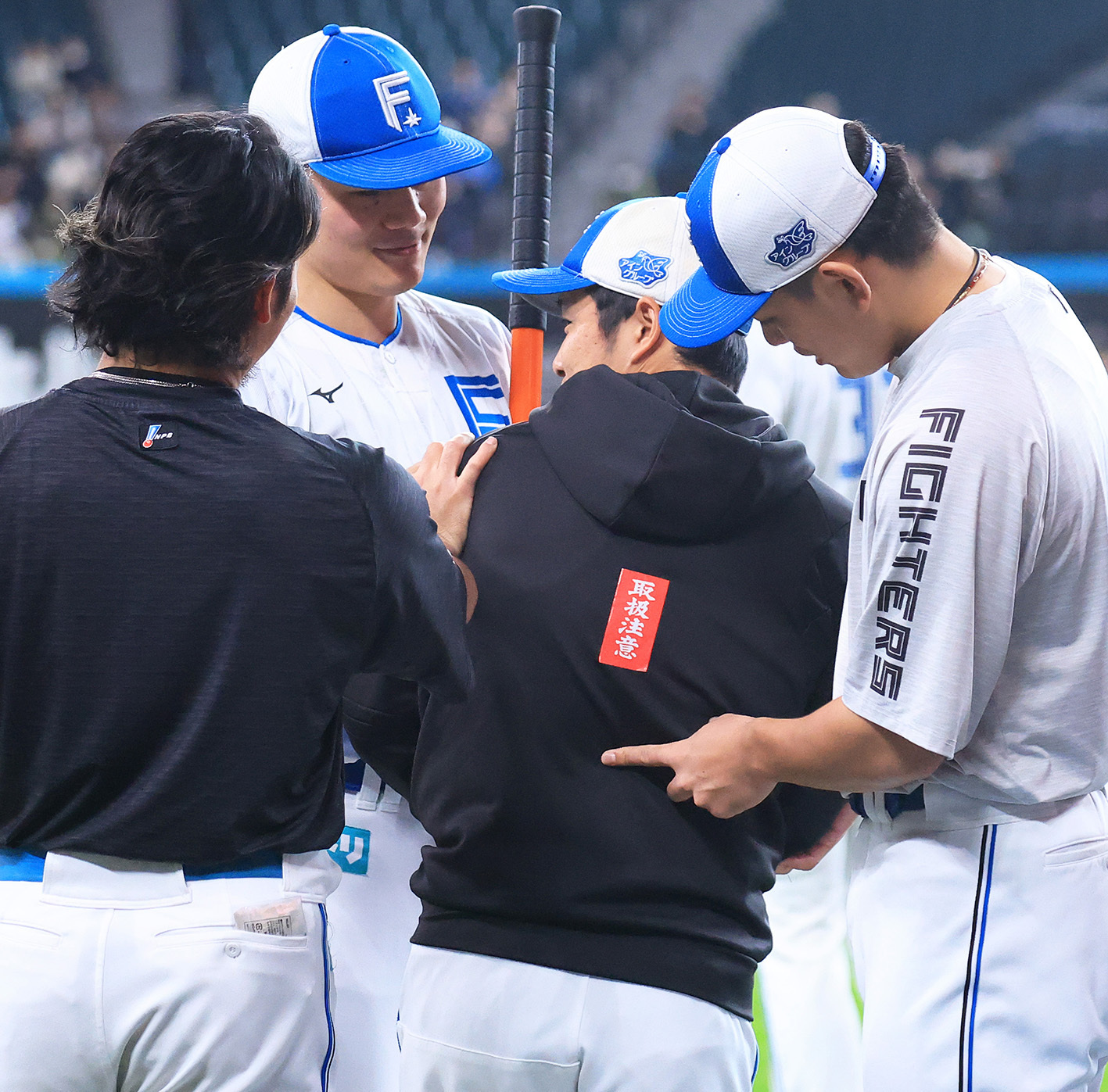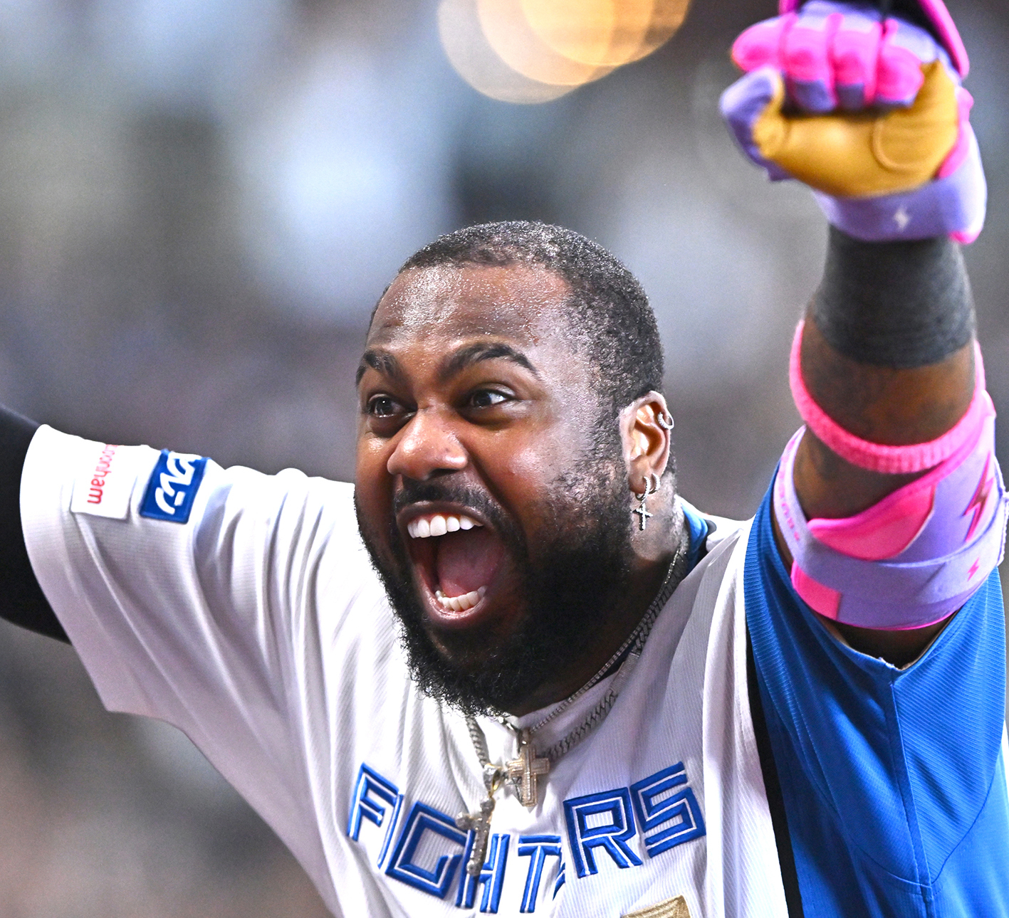 レイエスがサヨナラホームラン。0-0の九回にライトスタンドへたたき込み、全力疾走でダイヤモンドを一周。ヒーローインタビューでは自身の一発について日本語で「えぐい」とコメントし、囲み取材では「吉田選手に教えてもらいました。たくさん(日本語の)先生がいます。清宮、細川、吉田、石井」と明かした。この日の写真の最後には、池田を中心にリリーフ陣が決行した宮西へのバースデーサプライズの様子も掲載されている。