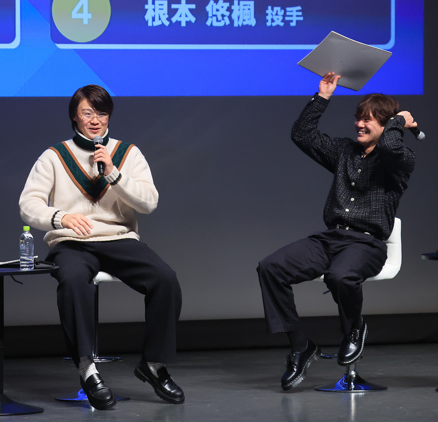 ダントツ1位は、選手会納会ゴルフで撮影したオリックス時代からの盟友・山崎、伏見の2ショットだった。11月中旬に女房役の阪神へのトレード移籍が決定。今月22日には、2人そろって札幌市内で行われたトークショーに出演。伏見がプレゼントしたおそろいのメガネ姿で、息の合った掛け合いを見せた。その日の道新スポーツの記事では掲載しきれなかった、自称さちとら担当・松本カメラマンが撮影したショットも特別公開します。