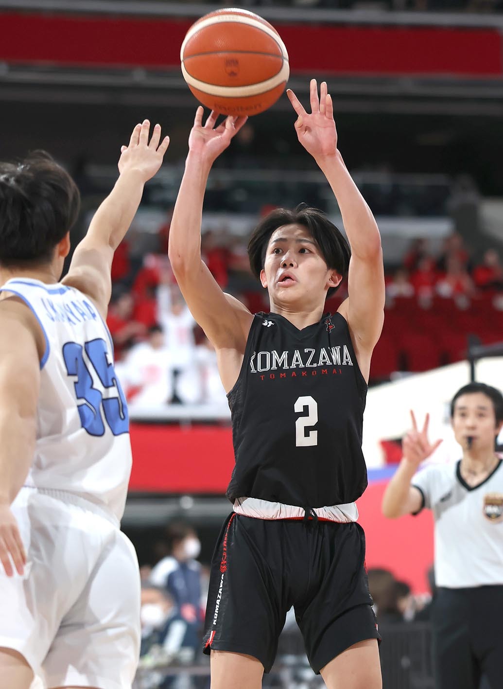 石川県野々市出身。22年に札幌市で行われた全国中学では、現・開志国際主将のPG北村優太(3年)と2ガードを組み、布水中を準優勝に導いた。その際、駒大苫小牧の田島範人監督(50)から「留学生が来るからどうだい?」と誘いを受けた。地元・北陸学院からも声がかかっていたが「体験にも行って、僕は留学生とやってみたいという気持ちがあったので、駒沢に来ました」。北陸学院は夏のインターハイで8強入り。「チームメートも今めちゃくちゃ活躍している。嫌というわけじゃないですけど、こっちで留学生とやる方がいいのかなって。あっちが夏、勝っても、こっち(苫小牧)に来て後悔はないです」と言い切った。