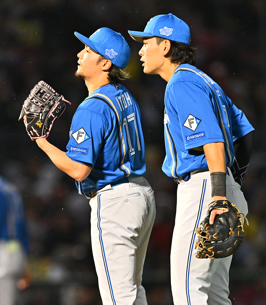 実は、伊藤と野村は本拠地・エスコンのロッカーが近いという。「僕いて(通路挟んで)剛さんいて、奈良間いて、(水野)達稀がいてジェイとか。ここ結構、しゃべりますよ。ジェイもスイッチ入ったらしゃべるじゃないですか。それを黙って聞いていたり。野球の話もするし、普通にこう、なんでも話します」